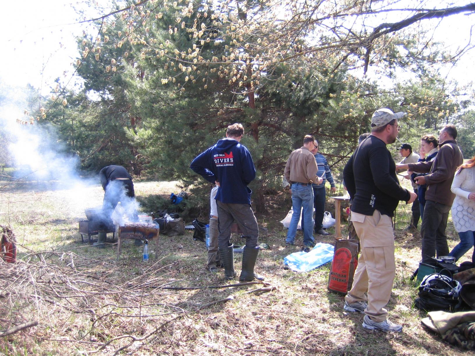 Лагерь примерно в сороках шагах, на соседней поляне.