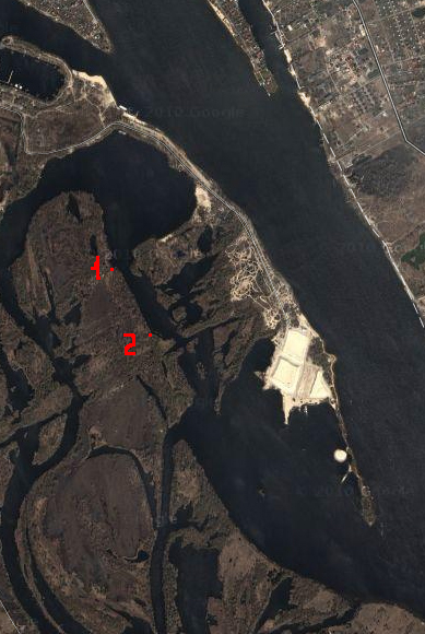 На месте 2 небыл, а вот на месте 1 простоял недлю назад 9 дней! Во первых в данный момент там стоит детский лагерь и дето еще неделю там будет. К самому острову претензий нету. Места много, отдыхать очень удобно. ГРИБОВ ТАМ ПРОСТО НЕМЕРЯНО!!! В бухту действительно если немного расчисть станет 6-8 кораблей. Но вот купаться там... В данной бухточке вода практически стоячая, вонючая и все цветение там собирается прямо под берегом и стоит до обеда пока вода подниматься не начнет. Честно сказать я со своим малым отходил на другой берег чтобы покупаться...