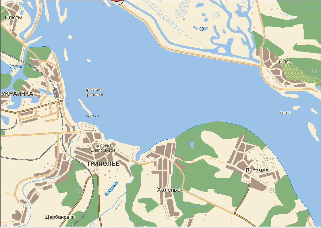 Это грубо говоря напротив с.Триполье. Или 2 км. ниже г. Украинка по левому берегу.