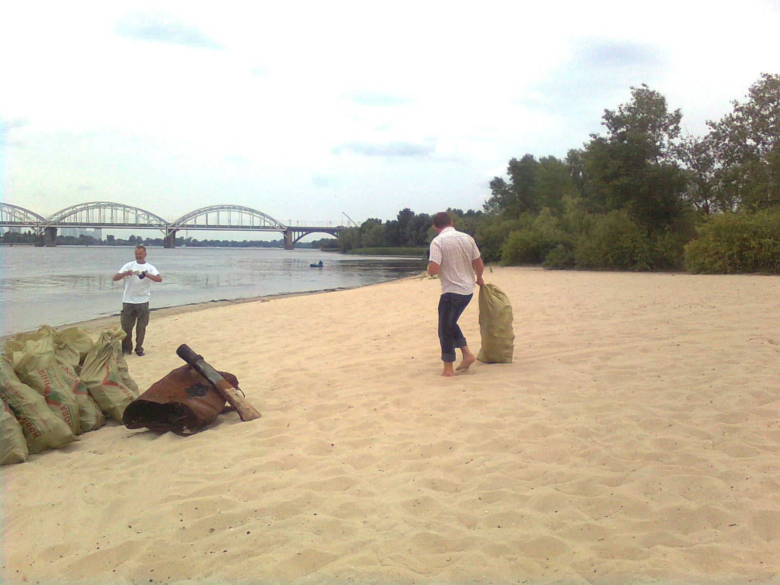 Вышли на большой с экологами, чтобы оценить его экологическое состояние и спланировать действия по его (состояния) улучшению. Первое что бросилось в глаза – последствия деятельности полумеров (тех кому облом вывозить так они закапывают. Два аргумента не в их пользу: 1. Мусор закапываемый, а это в основном стекло и пластик в последствии никуда не девается, и уже сейчас копнув в некоторых местах нарываешься на уже закопанное до того. Так же об уже закопанном свидетельствует слегка осевший грунт от того что все-таки небольшая часть закопанного перегнивает. Местами такие оседлости одна на одной (например со стороны Южного моста) и так как закапывать местов не много его уже и не закапывают. 2. Это видно на фото – остров со стороны нового моста потихоньку уходит под воду (вода обламывает берег с каждым годом все больше) от чего вылазит закопанное и сыпется в воду. Зачастую это битые бутылки. Если не думать, что это дерьмо человеческое можно сравнить со слоями цивилизаций которые были до. Только учитывая по наличию пластика в этих закладках который начали использовать сравнительно недавно, это до было совсем недавно. Очень удивило место стоянки со стороны РОП-4 где еще неделю назад жили постояльцы. Свалка наваленная годами. И в чем смысл интересно выезжать из городской свалки в свалку островную??? Результат – экологи были поражены «европейской» культурой народа нашего. Самые загаженные части острова – со стороны левого берега ближе к Южному мосту и со стороны правого берега от центра и в сторону южного. Часть острова ближе к новому мосту находится в сравнительно удовлетворительном состоянии. По результатам принято решение провести уборку острова «Большой» ориентировочно в первую субботу сентября. Для тех, кто не сможет именно в субботу будет возможность взять необходимое количество мешков на своей стоянке (у руководства). Мусор вывозить не обязательно. Можно просто указать где он находится. В субботу мы все вывезем. Мусор собирать раздельно: В полэтилен пластик, в строительные мешки стекло. Кроме уборки планируется установка информационных стендов на стоянке о правилах поведения на островах, а так-же установка на островах (малый и Большой пока) утвержденных надлежащим образом по гос. образцу информационных стендов с описанием острова, принадлежностью к «Регіональному ландшафтному парку «Дніпровські острови» и тп (более точную инфу обещали предоставить в понедельник). (образец на фото) ну и так же при совсем хорошей жизни уха на острове «Большой»….. Все это при наличии финансирования (в понедельник запрос уходит в эпицентр) и людей ну это как гри..тся от нас с вами …. Короче как-то так…. , так что предложения по делу принимаются…… Фотоотчет