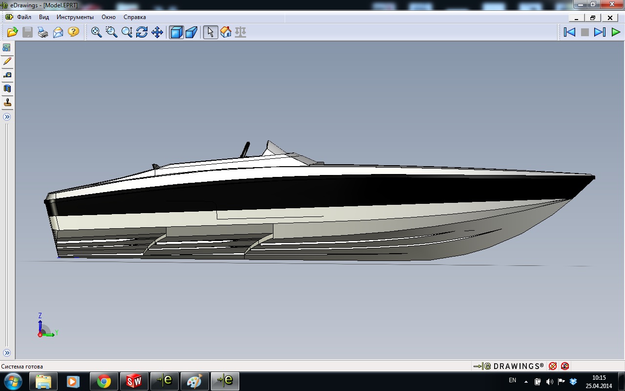 Это и есть новая модель :) Вернее так: пластиковый вкладыш разработан UMS-Boat, но получил новые опции и небольшой фейс-лифтинг, а корпус - разрабатывался PG Boat Design. Лодка получилась довольно сбалансированой и ходкой. Впрочем, лучше пусть будущие владельцы отписываются о своих впечатлениях ![]() Что касается "неидеальности" хода на опубликованном видео, то у этого корпуса диапазон эффективных углов атаки относительно ОП небольшой, поэтому может складываться впечатление "зажатости"... Ну и драйвер подзажал тримом корпус для прохождения волны (что есть правильным с точки зрения управления судном ). Касательно "усов", то это с передней кромки ближнего к килю редана брызговая пелена... Немного неудачно его окончили в носовой части . На скорость не влияет, но, действительно, немного портит впечатление от хода лодки... Этот артефакт на серийных корпусах исправлен...