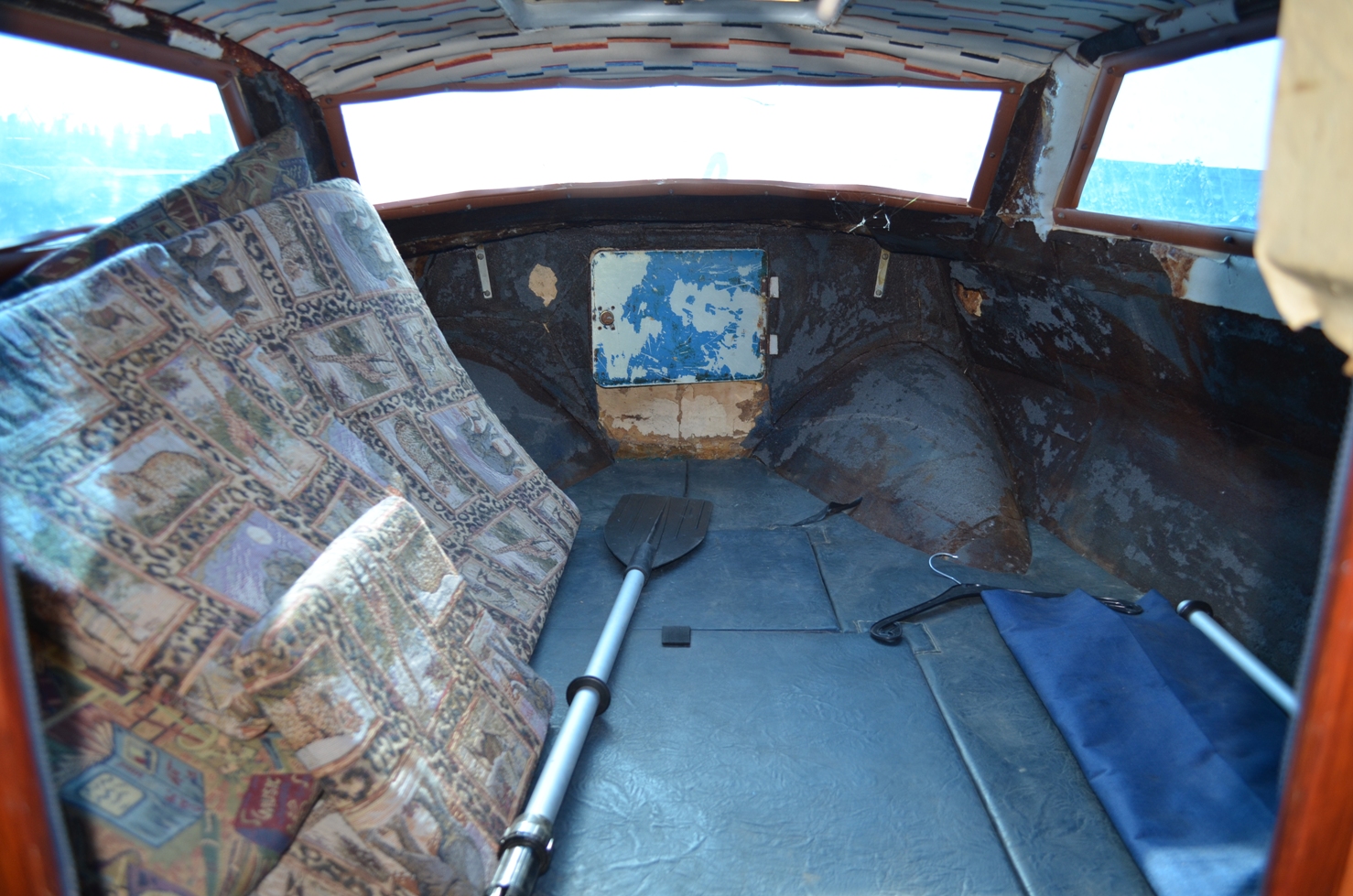 Как и обещал, правда с небольшим опозданием, выкладываю фотки! Крупным планом взял киль, где думал подклеить, дерево, которое хотел ошкурить и вскрыть лаком, лобовой поликарбонат, который нужно заменить, стыки полурубки, которые думал как то заделать и приборы, которые не работают, потому что от хонды - думаю их поменять на эвенрудовские и каюту, которую нужно как то оклеить тканью или украсить как то по-другому. Прошу поделиться мнениями!
