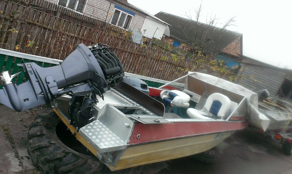 Так делал себе. Хонда в 84 кг как в бетоне... Шпильки сверлил под небольшим наклоном, так как хотел сохранить транцевый отсек, ка грузовой пришлось укрепить отрезом от правила(внутри фанерная вставка). Клин делал из влагостойкой строительной фанеры(толщина 30 мм).Рецес самоотливной делал из уголков и листа 1 мм.Бюджет гривень 350(кое-что покупал, кое-что было) Ну вот где-то так. Если есть вопросы спрашивайте...
