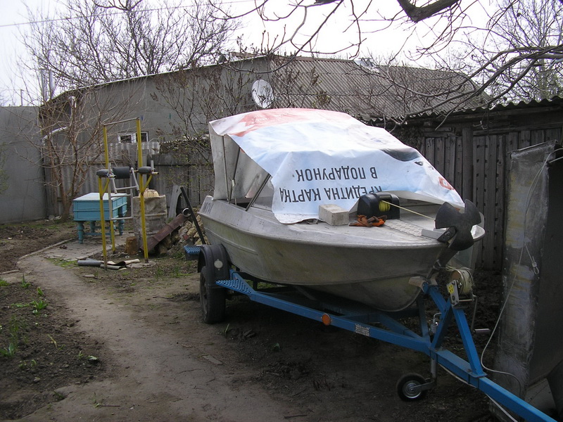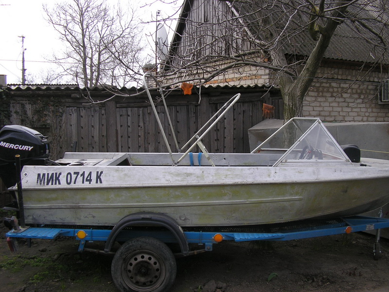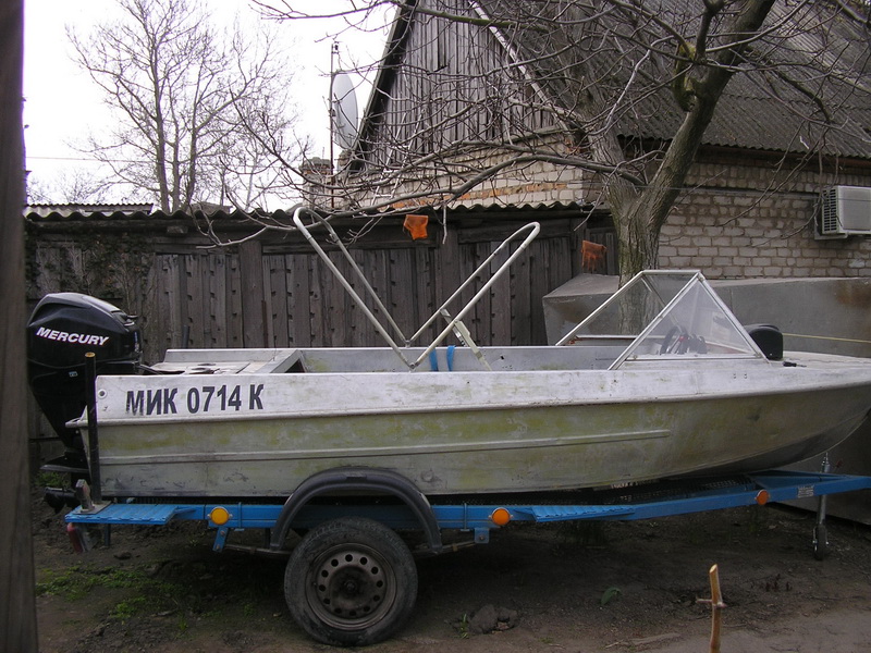 На подобии такого у меня есть. Алюминиевый, на первых 2х фото просматривается (на боку лежит) Но его либо вдвоем ставить либо подвешивать на штанге и опускать на лодку. В общем только для зимовки его и применяю.