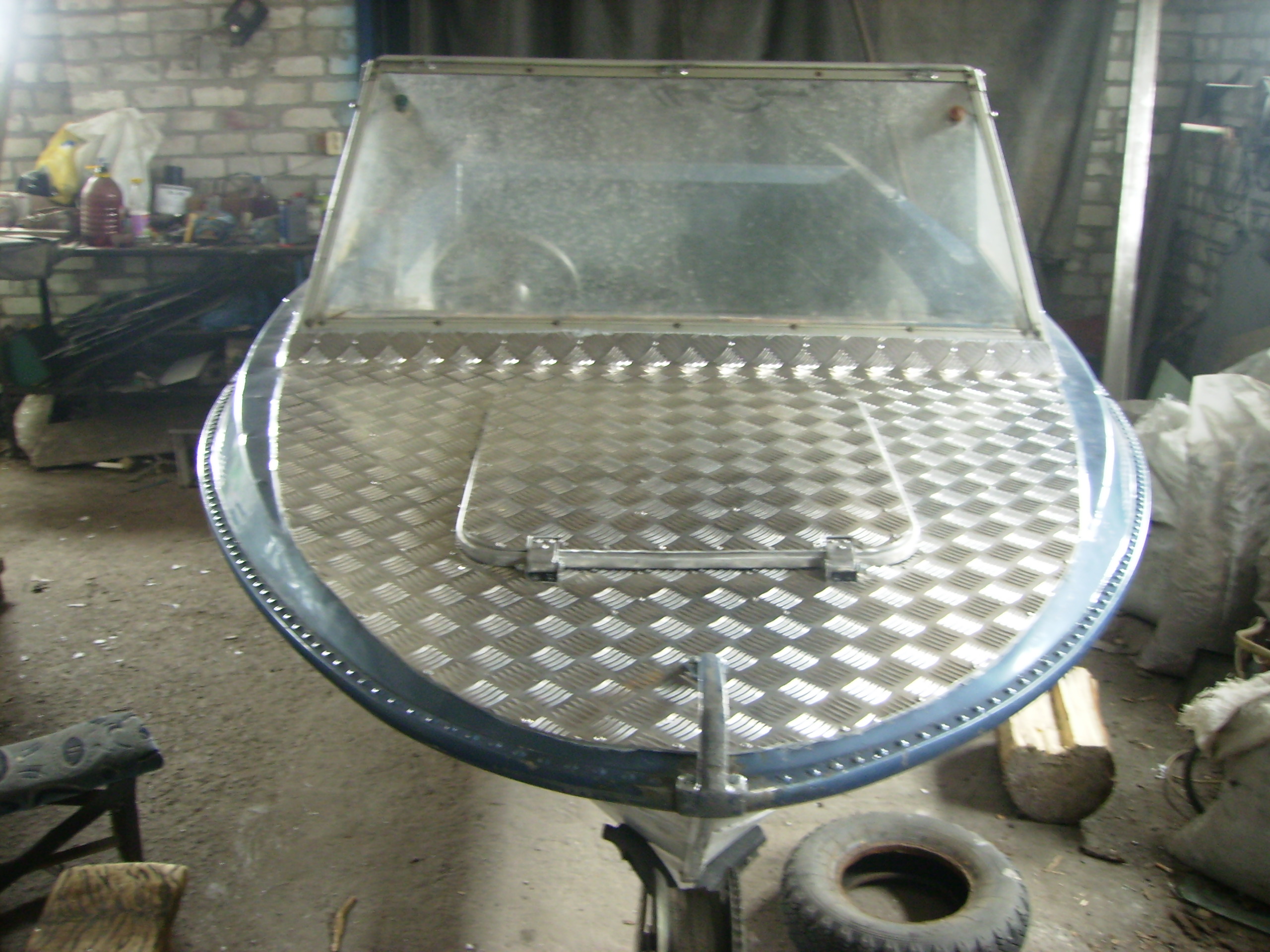 Из за эстетики врезали и такой люк + важное усиление под него! Человек за 100 кг свободно бегает по носу без последствий (трещины, прогибы и т.д.) уже 3-год.