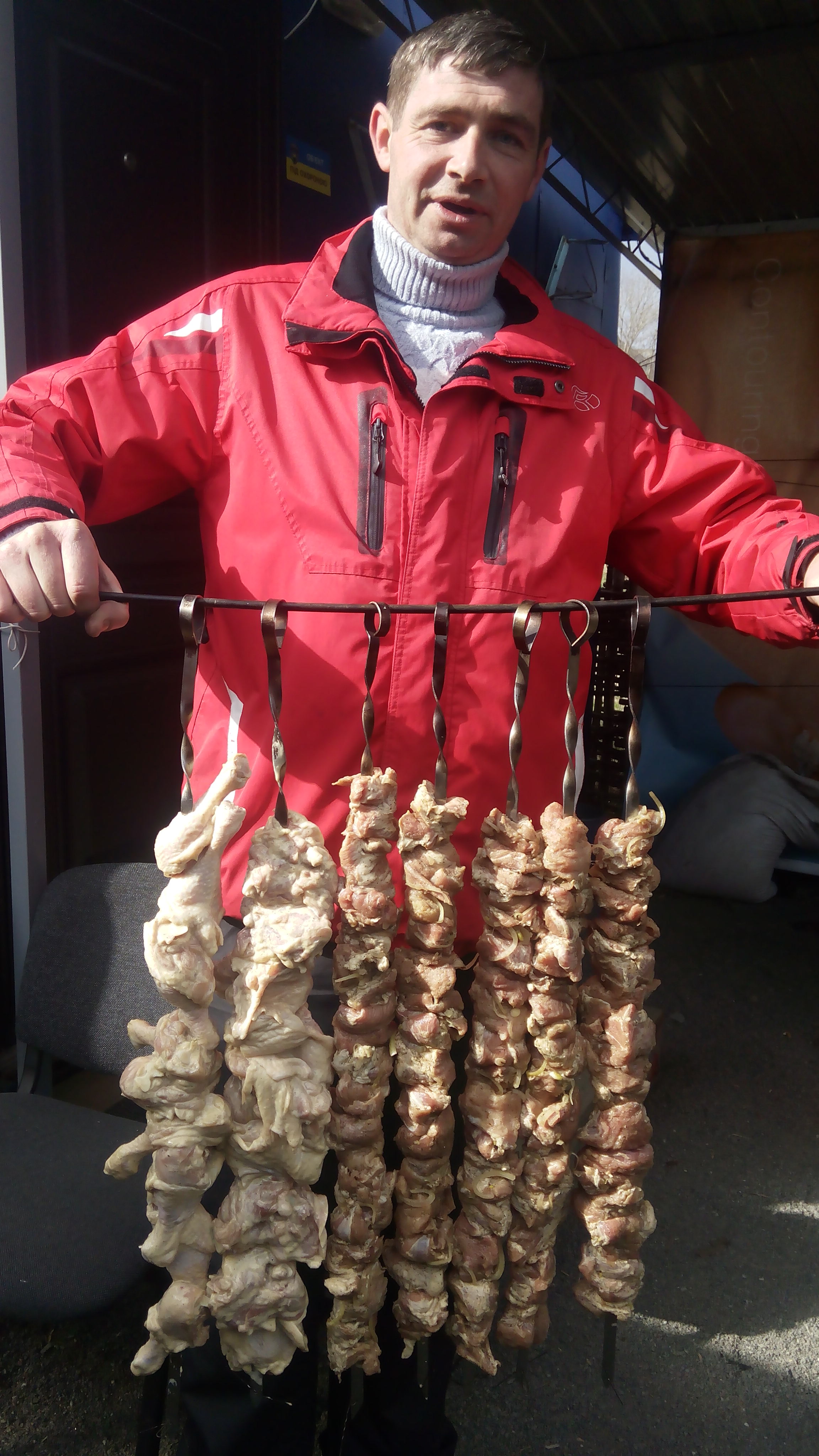 Я брал не большой на шампуров 12. На человек 15 точно хватит. Шашлык, цыплята просто бома мясо получается сочное Стоял осенью 4000тис. тандыр, 10 шампуров, подставка под казан.