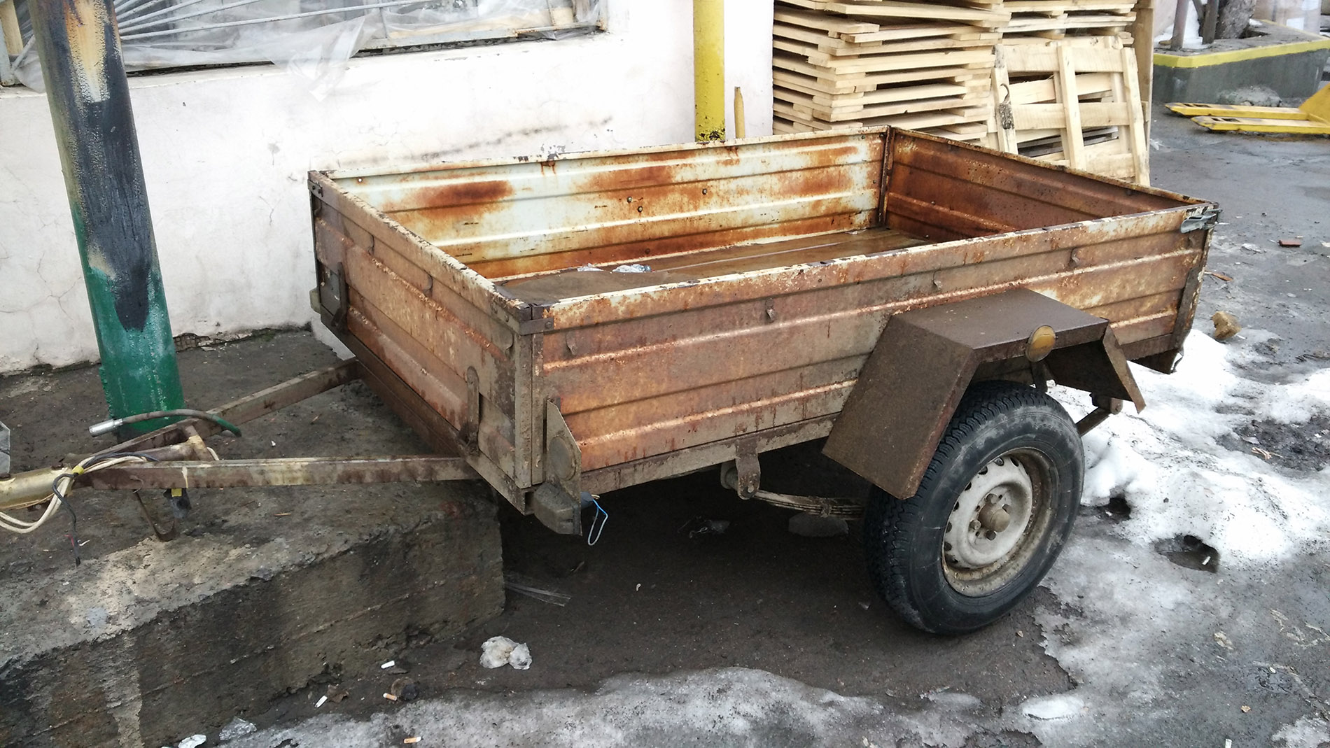Есть прицеп Фермер. Полностью на ходу, дополнительные борта, тент, доки. Только краска поржавела.