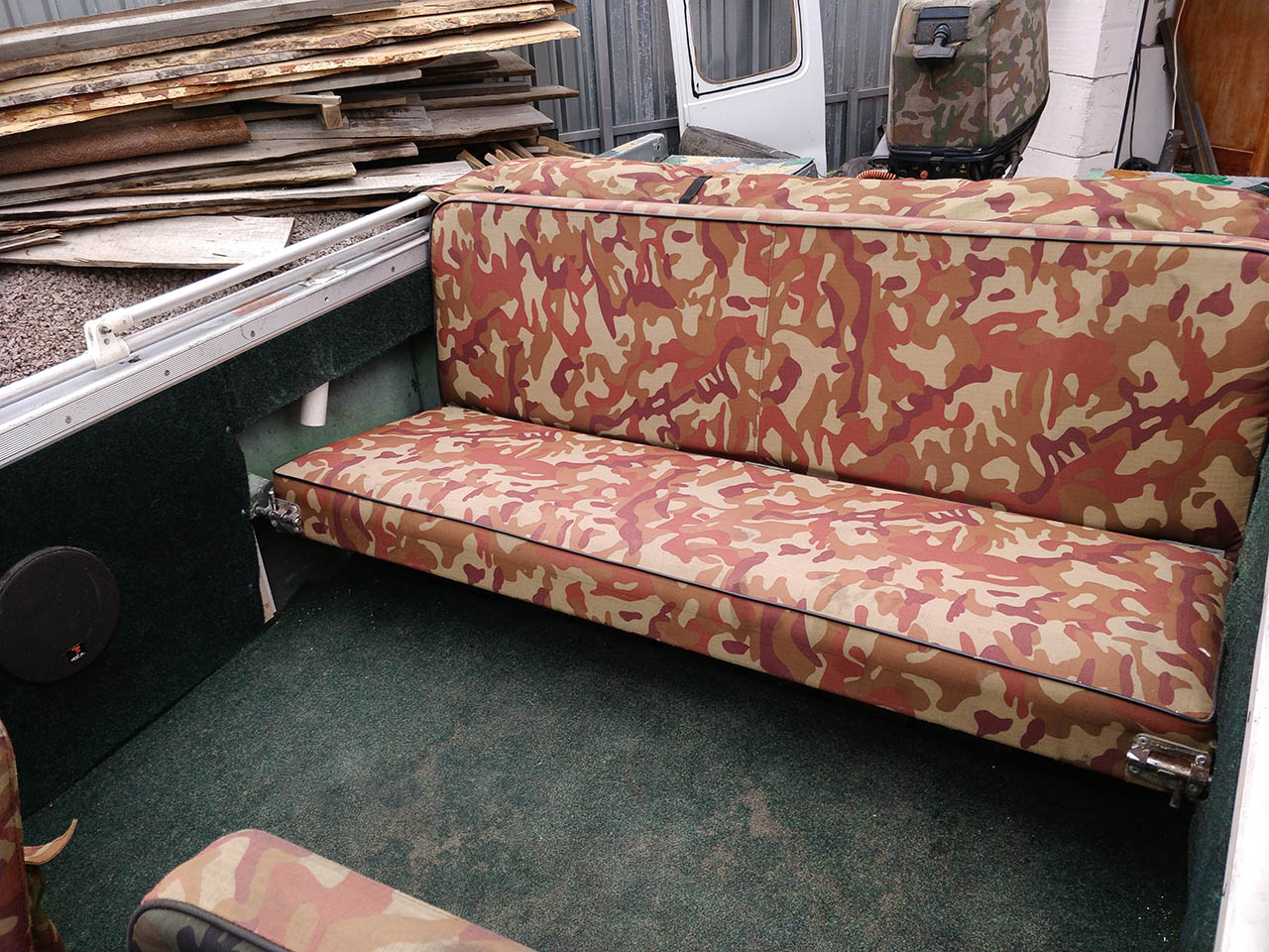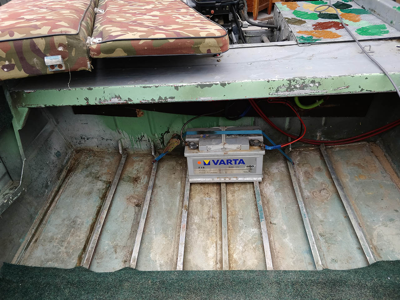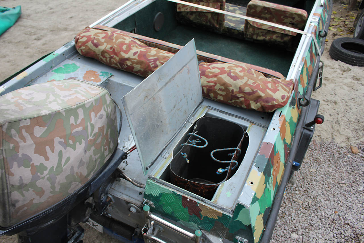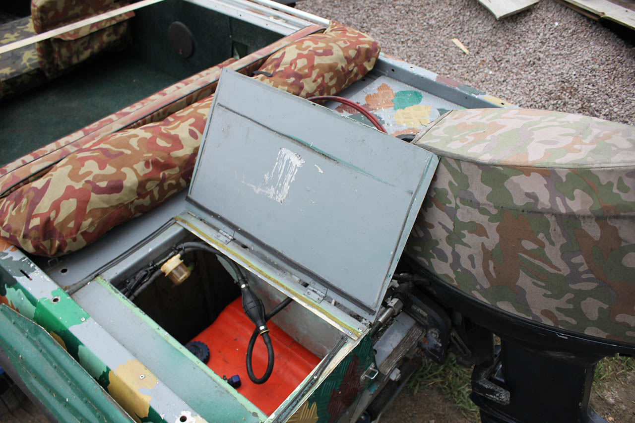 -в корме 2 рундука, слева бак и вмещается канистра на 20л, справа пластиковая емкость для рыбы.