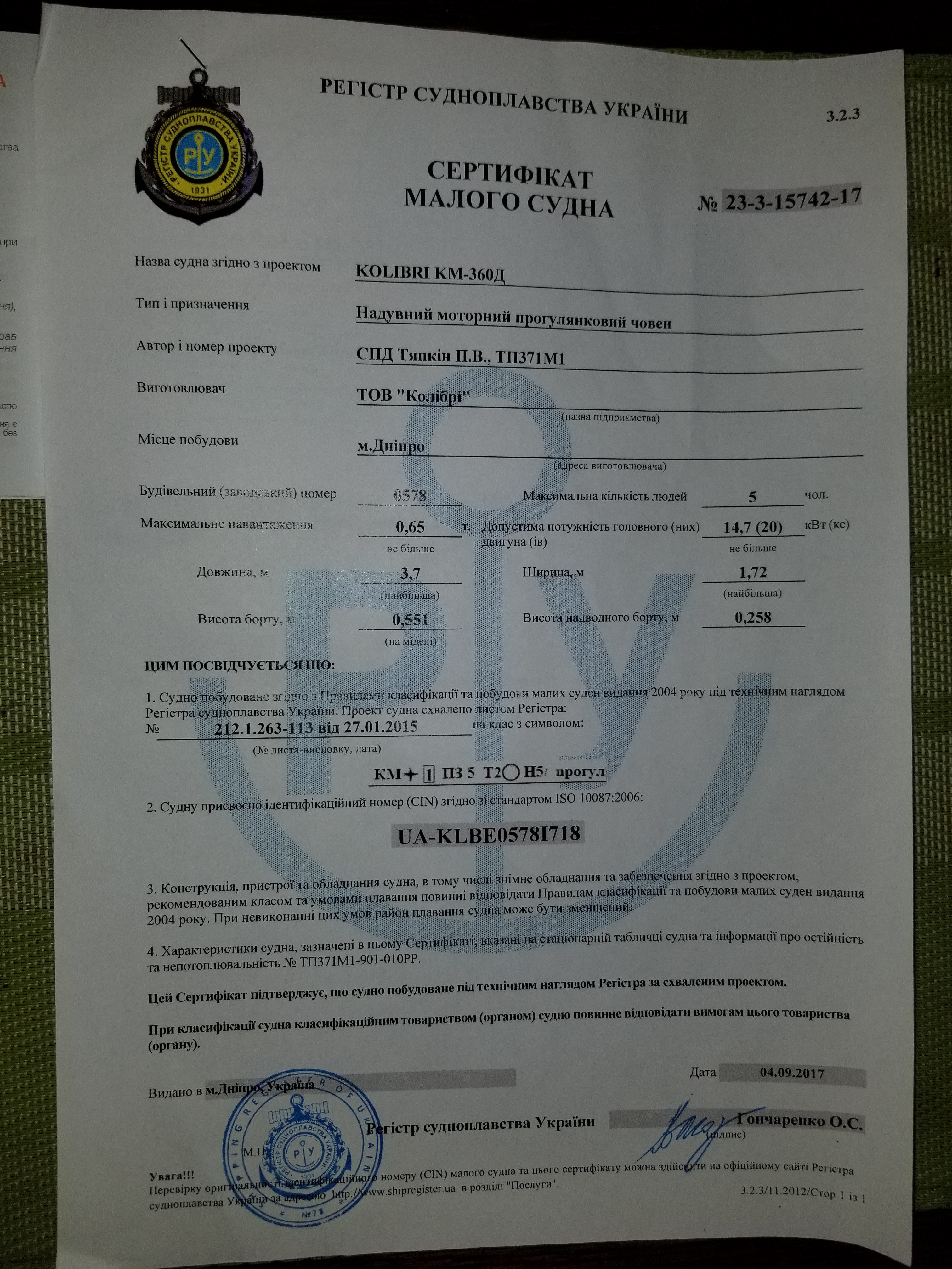 Типово Re: Колибри КМ360ДСЛ / Kolibri KM360DSL килевая пв