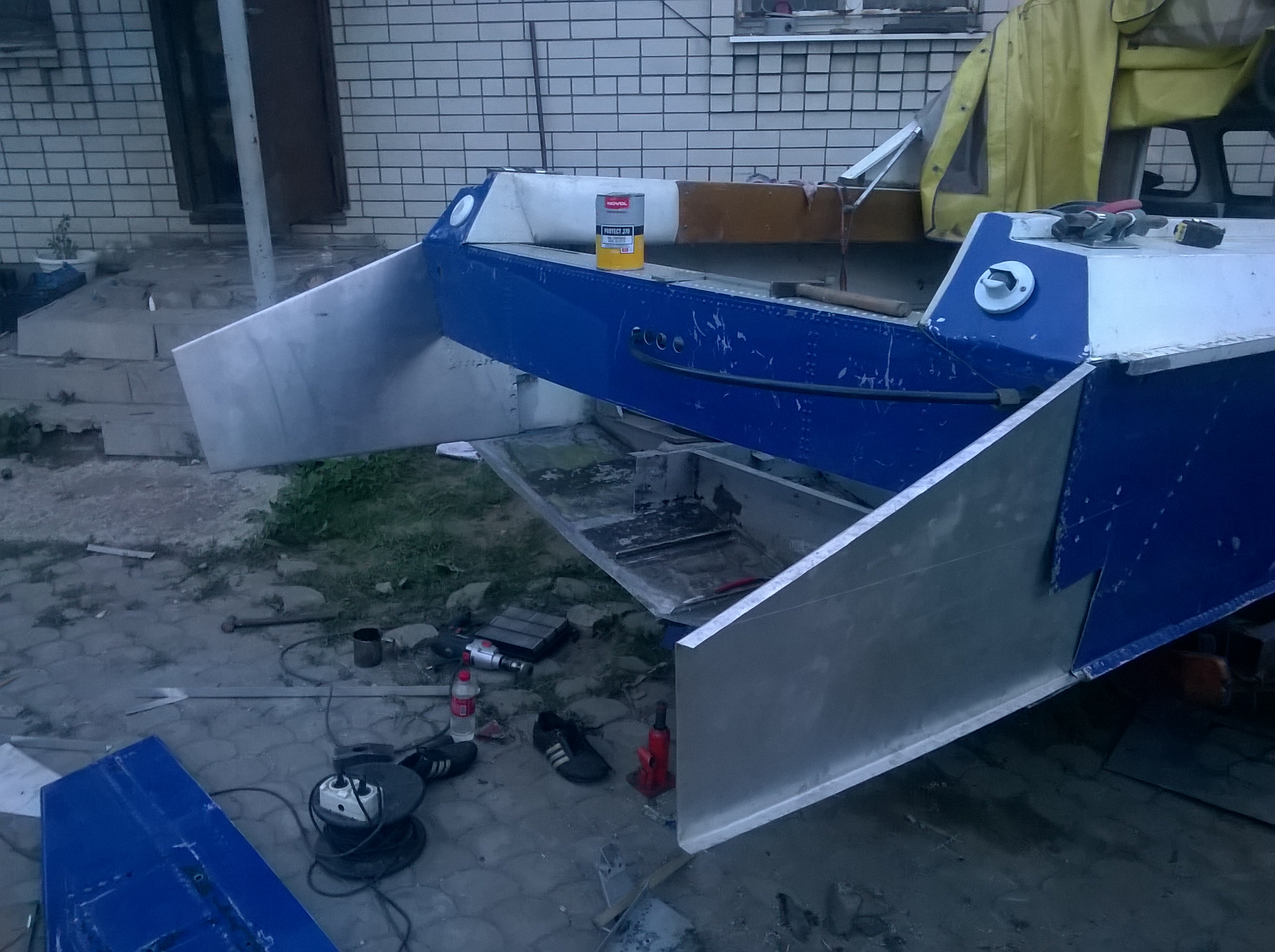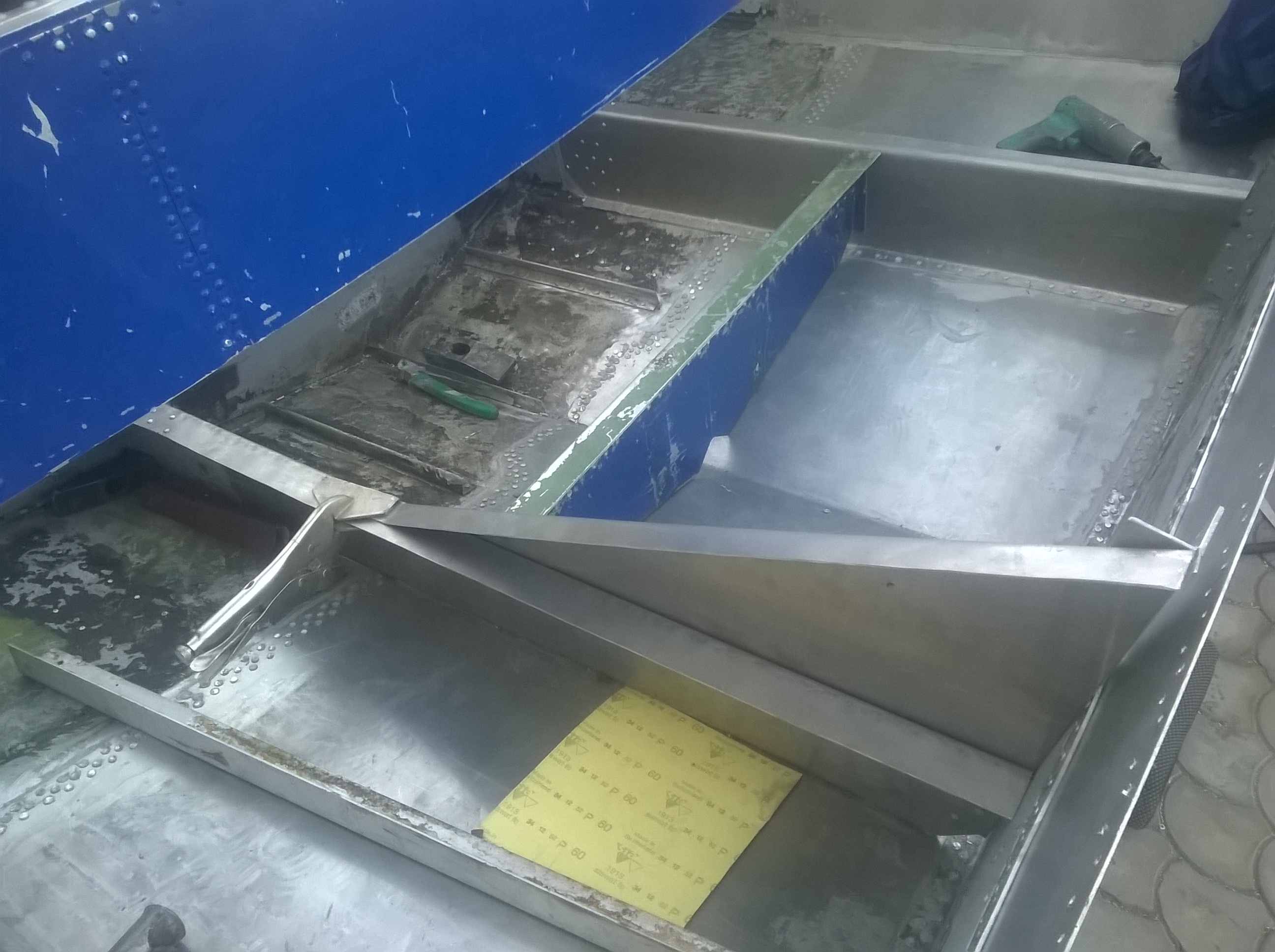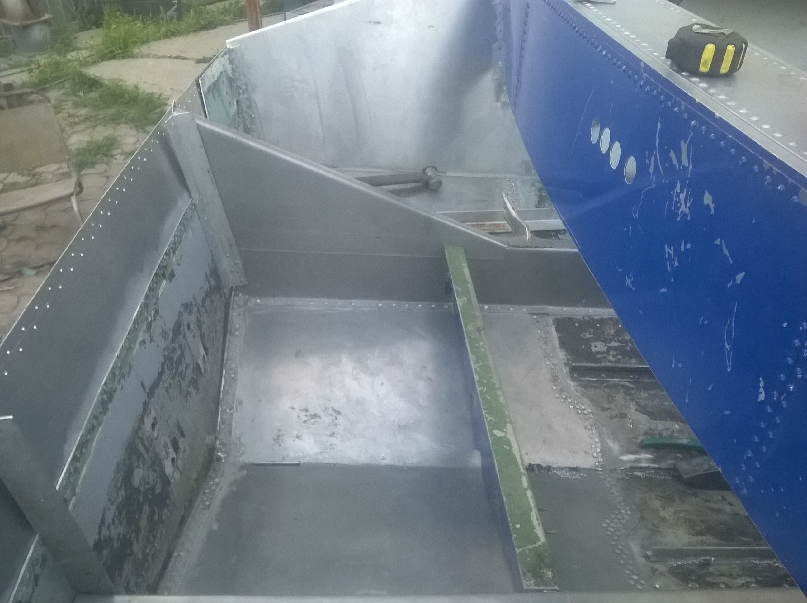 Сегодня доклепали борта и днища, осталось задний борт и усиления