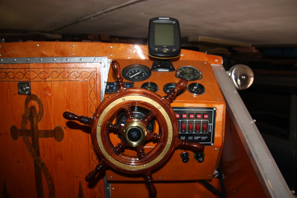 Всем здравствуйте! Вот и подошла к завершению моя работа. Рулевку пришлось заменить на более практичную, поставил рэйлинги больше для безопасности т.к. рыбачить приходится под ГЭСом, да и по осени ходим с фарой на щуку. С салоном кажется переборщил. Осталось найти привальный брус. Так что не цените строго. Всем спасибо.