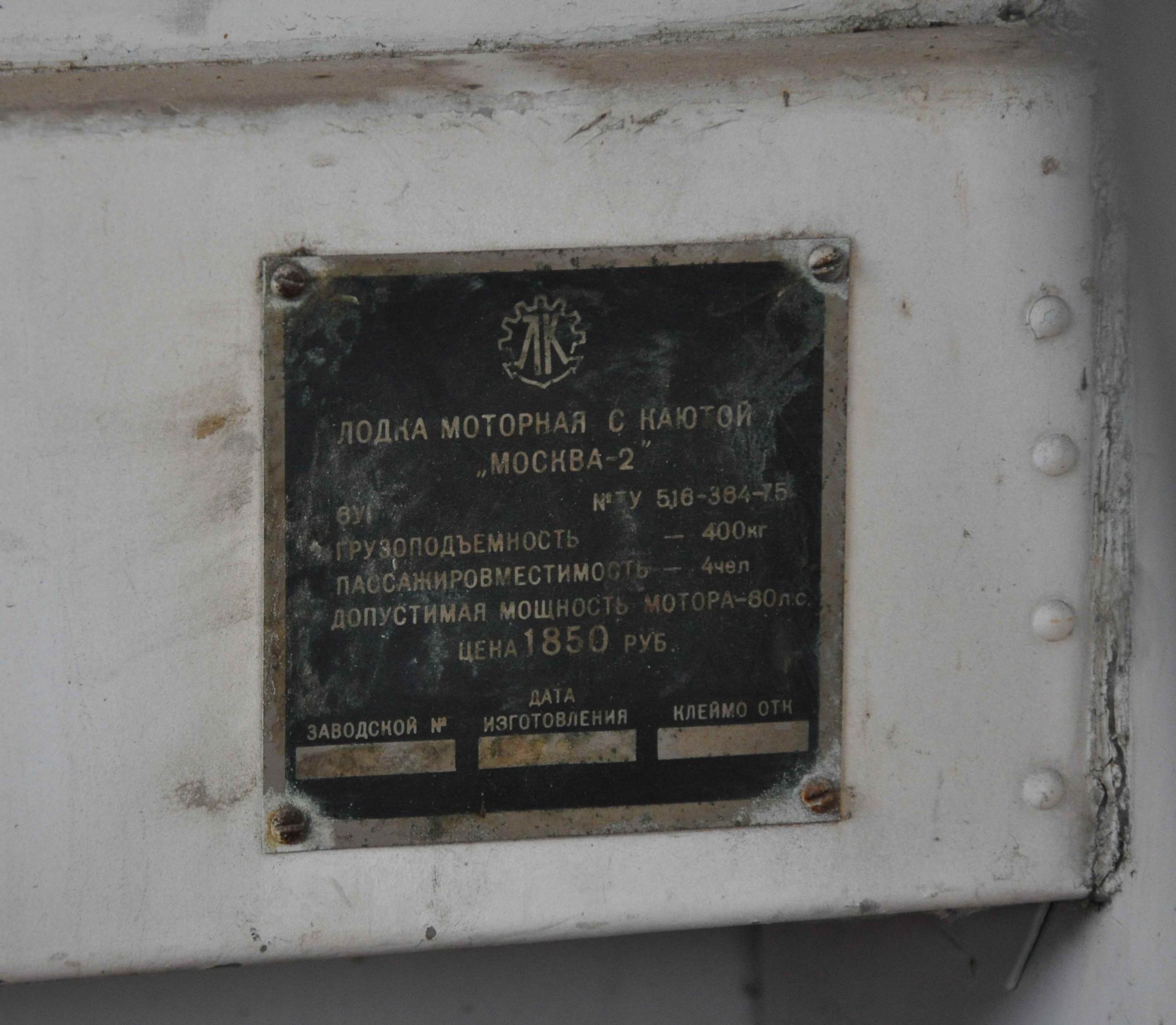 На Москву 2 надо ставить минимум 80 максимум 100 сил, усилять дно и транец обязательно. Имхо.