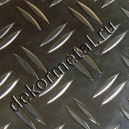 Лист алюминиевый рифленый имеет матовую шероховатую поверхность и выпуклый рисунок, формирующийся на гладкой поверхности листа в виде рифлей, расположенных под углом друг к другу. Толщина листа алюминиевого рифленого указывается без учета высоты выпуклостей. В зависимости от количества рифлей в рисунке производят следующие виды алюминия рифленого листового:
