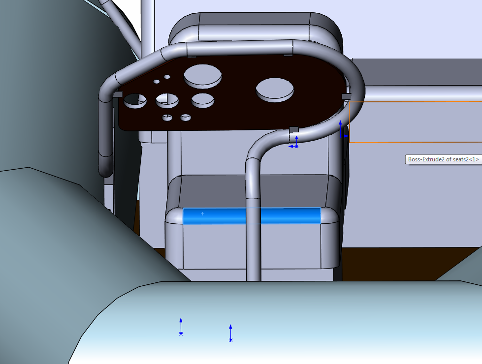 Я от поперечной консоли отказался из-за преграды выхода в носовую часть, зато было бы удобно рядом сидящему пассажиру, есть за что ухватиться))