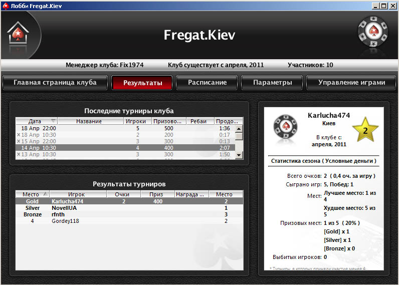 ЗЫ: кстати турнир в котором участвует меньше 4х человек в клубном рейтинге не учитывается :(((((((((((((
