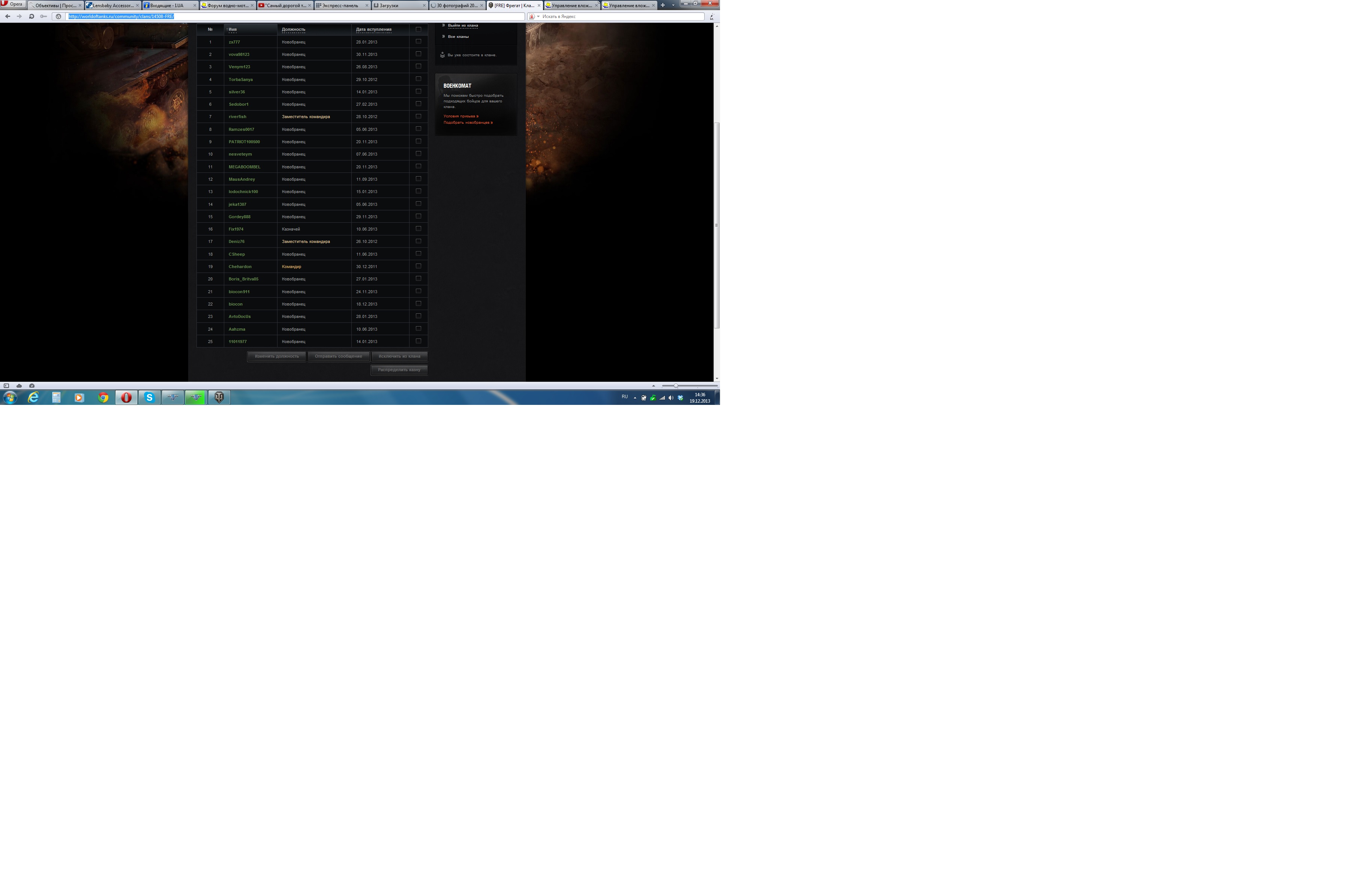 4. В личном кабинете игры принимаем приглашение в клан после чего "[B]любуемся логотипом Фрегата на всей своей технике