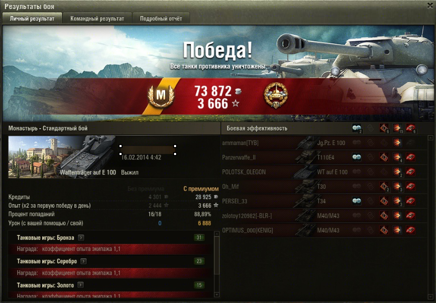 P.S. Странно, воина не дали за 6 фрагов, зато какая-то новая награда - "Основной калибр" Востаннє редагував _woland_: 16.02.2014 о 06:12. |