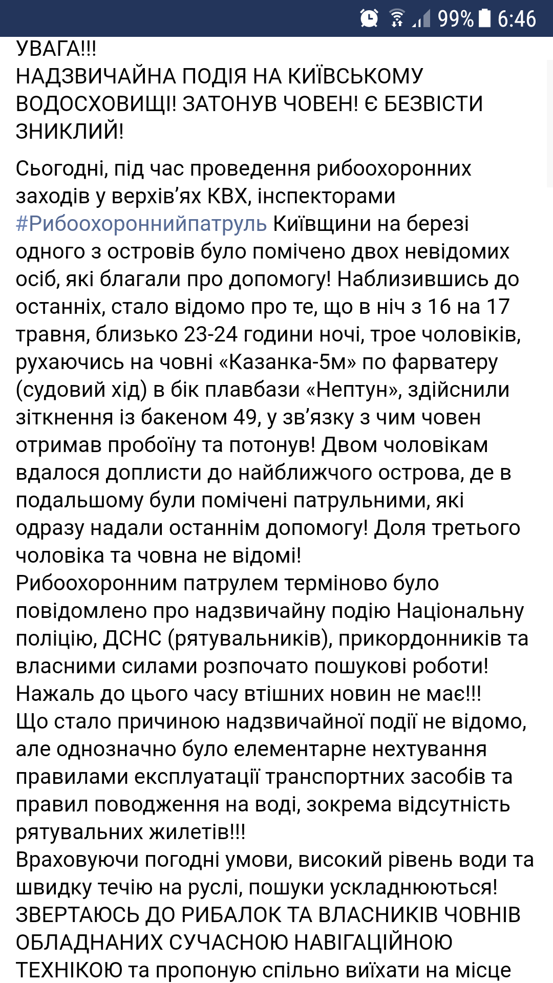 ВНИМАНИЕ! Полтора часа назад на Днепре утонул рыбак!Я как раз гулял со своим псом. По словам очевидцев (рыбаков) одет он был в спортивный костюм(???) и серую шапку с балабоном( помпон), с ним была собака.Породу собаки никто не знает.