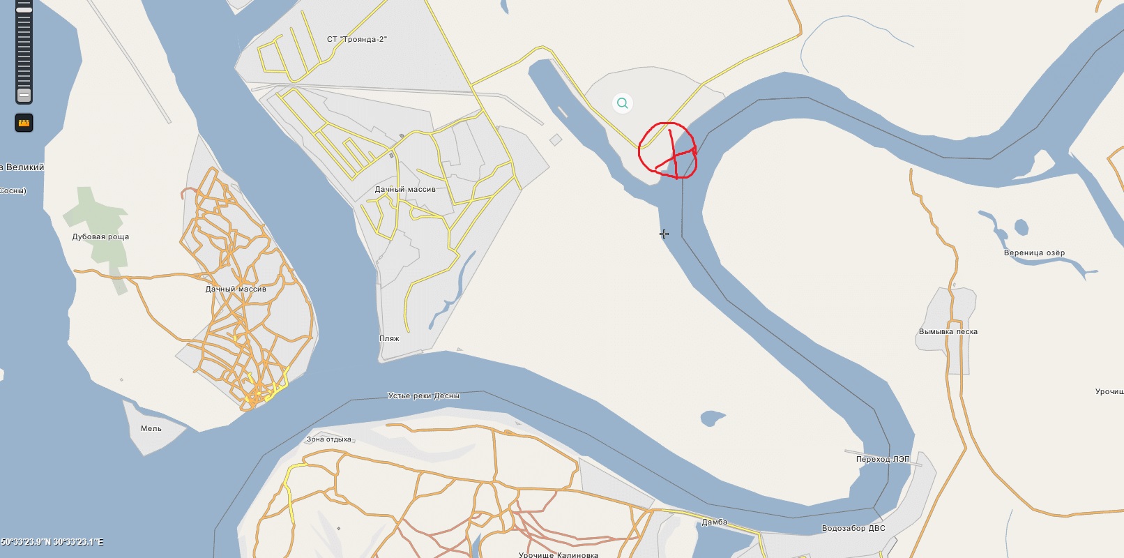 Это 6-й километр. Подходил с воды чуть ближе 2 дня назад,там вроде промоины.Для чего огородили,так и не понял.