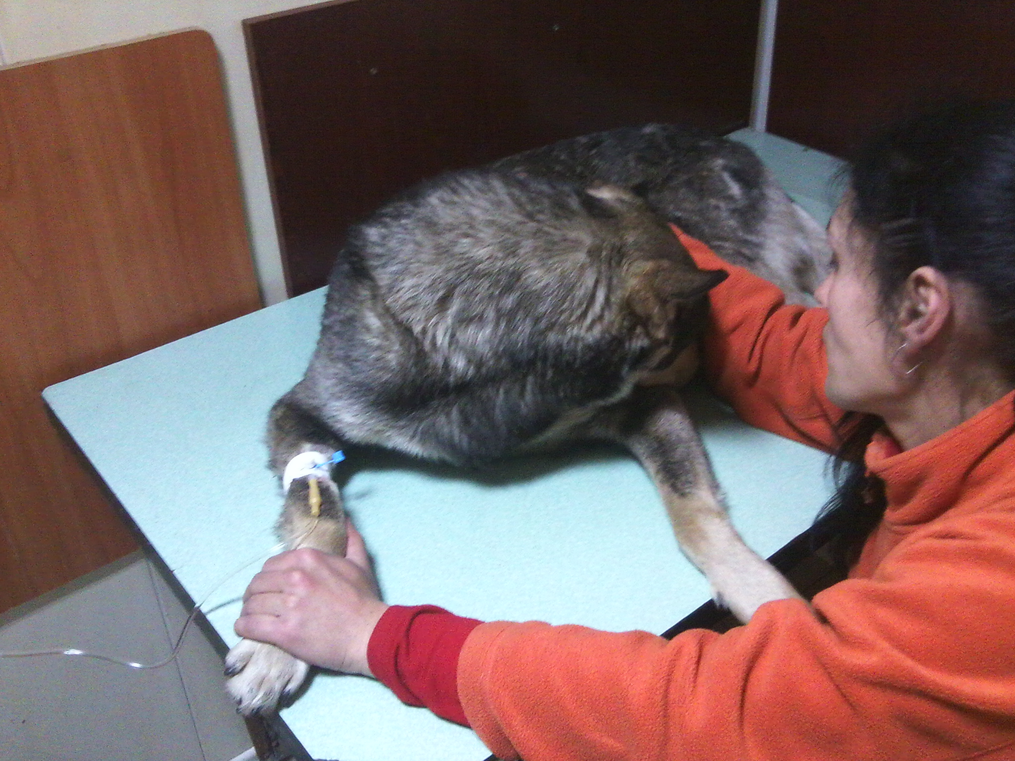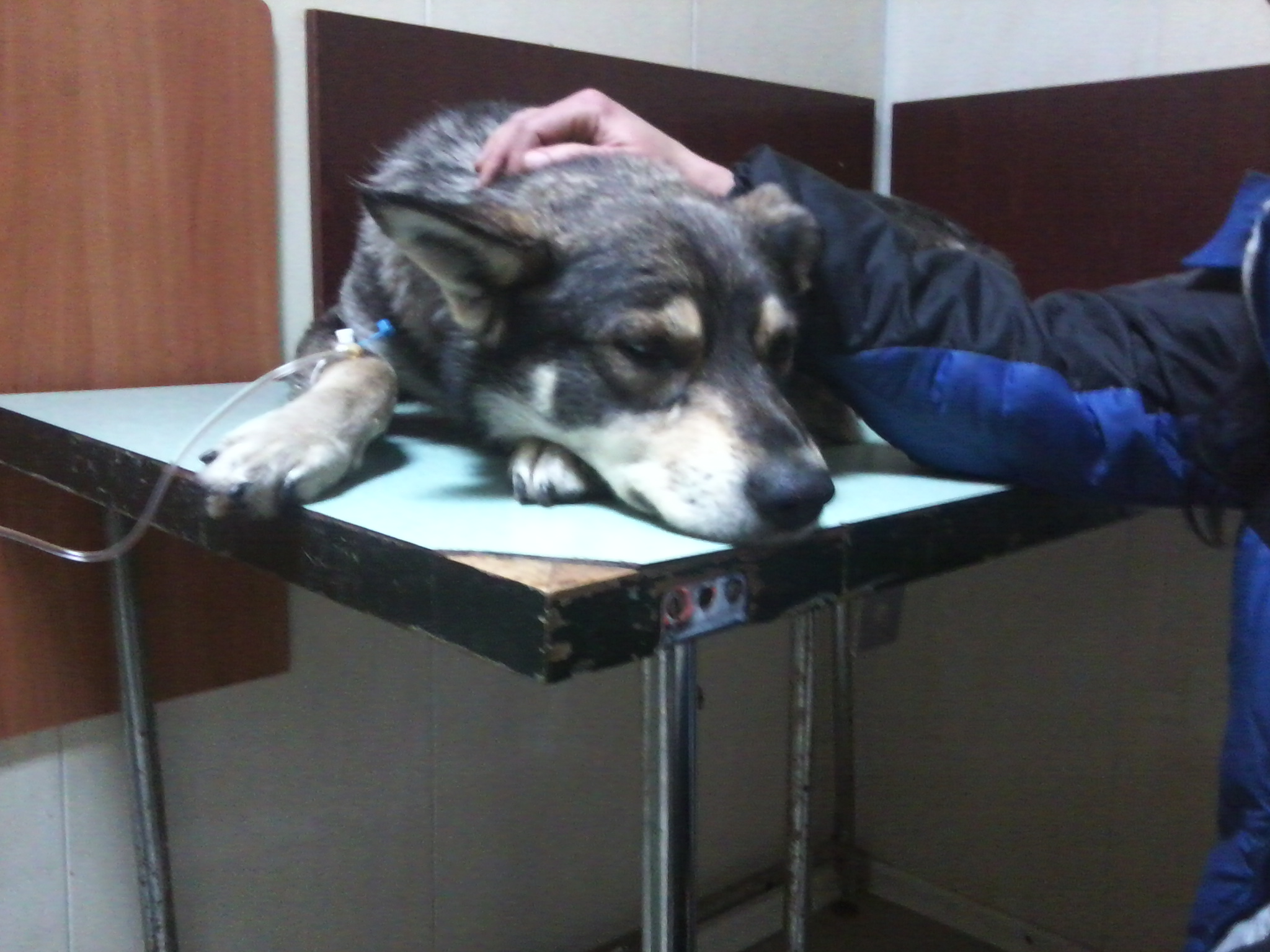 Докладываю для неравнодушных,Папай сегодня начал кушать,покакал(у кого есть собаки,поймут какая радость когда собака какает)хоть и жопа не подымается,но на соседних собак уже гавкает.Ближе к вечеру начал нормально ходить,когда ставили капельницу,начал возмущаться,пытался напугать какой он грозный и кусючий.Ещё несколько дней покапаем и укольчики,и будеть как новенький.