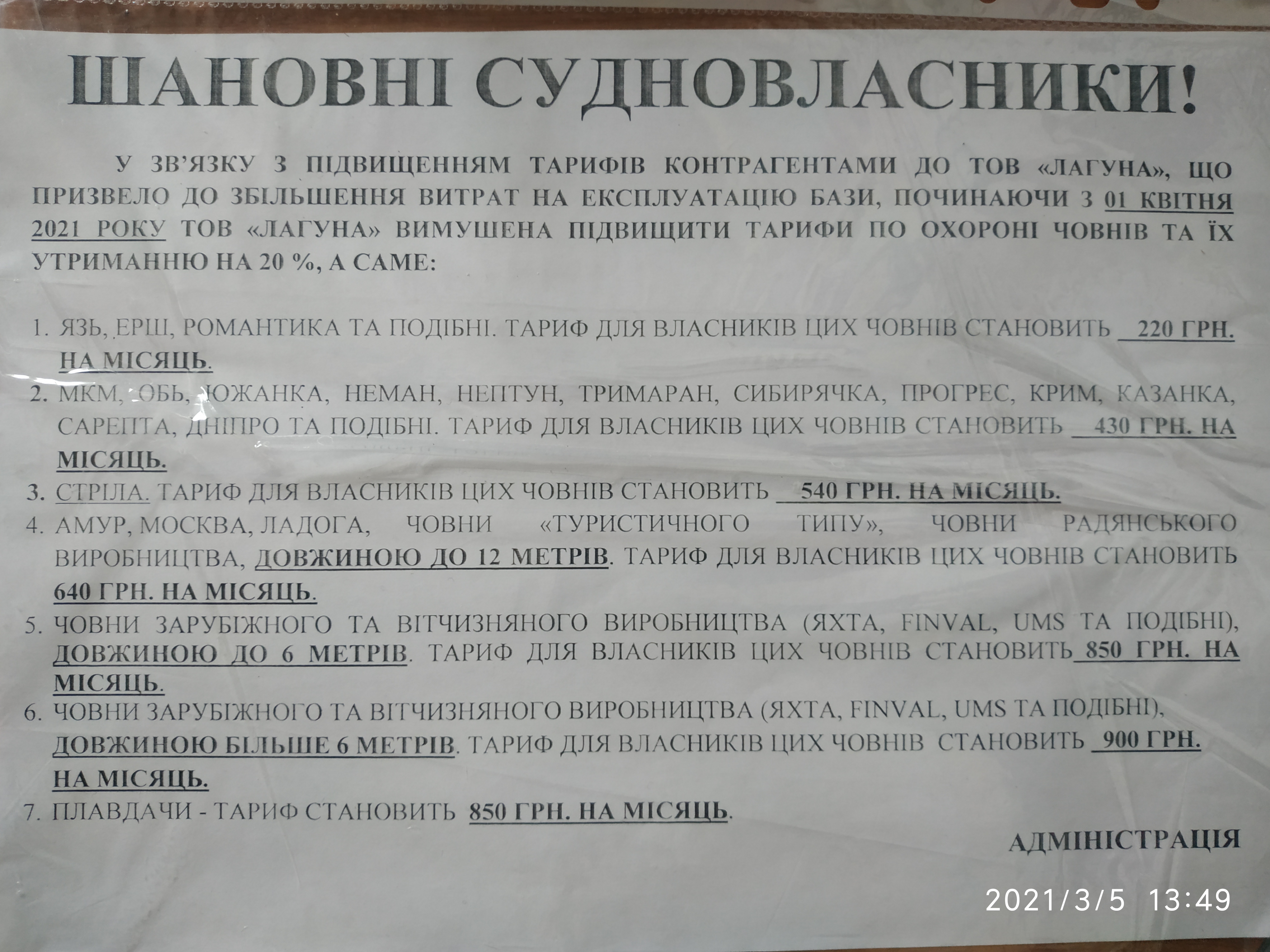 Кожний рік з 01 квітня ціна стоянки змнінюється... і, на жаль, тільки в бік підвищення. Ось і цей рік не став винятком.