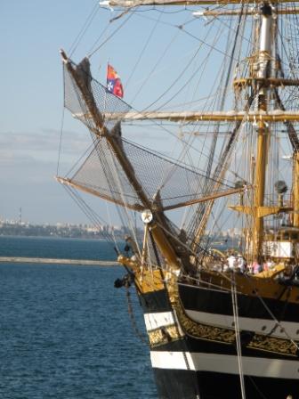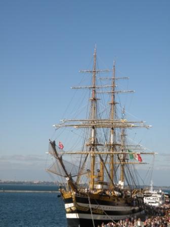 Вот такой красавчик сейчас стоит в Одесском порту. Парусник "Amerigo Vespucci", построен в 1931 году по приказу Муссалини. В настоящее время является учебным судном королевской морской академии Ливорно, Италия. Состояние идеальное. |