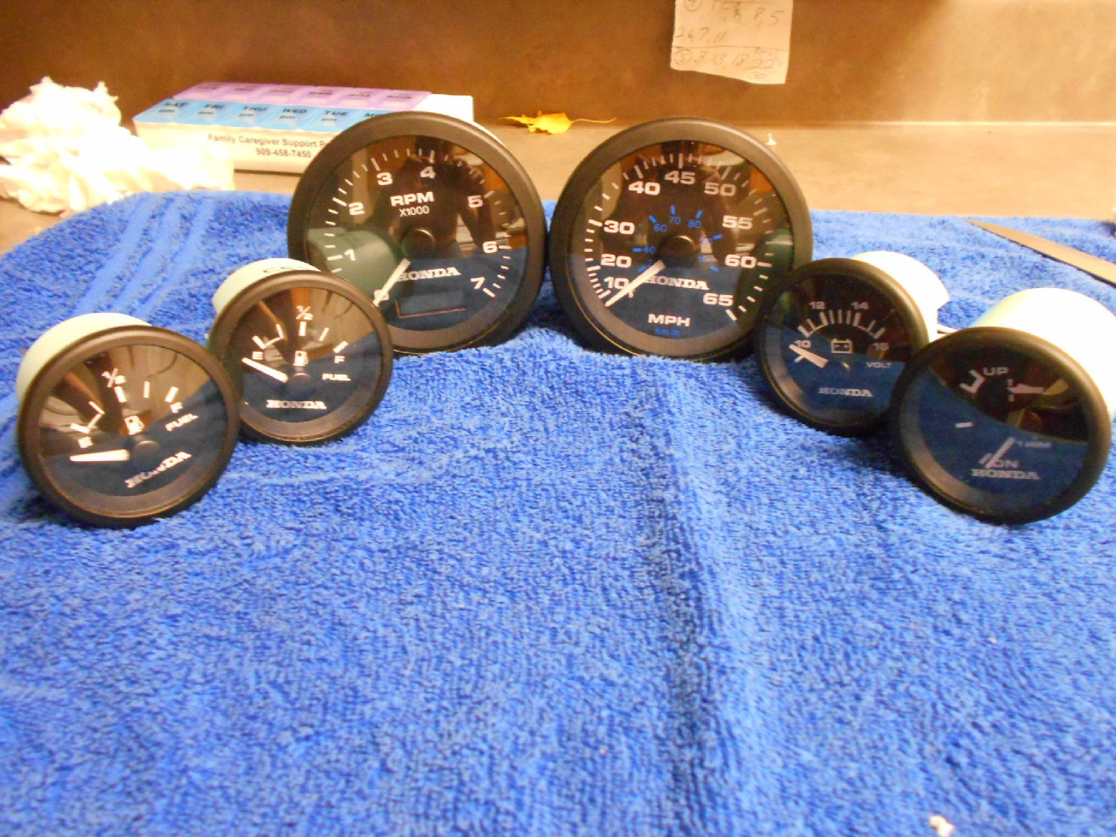 Набор Хонда 5 приборов - тахометр с моточасами, спидометр, указатель трима, топлива и вольтметр. Набор новый, но без коробки.
