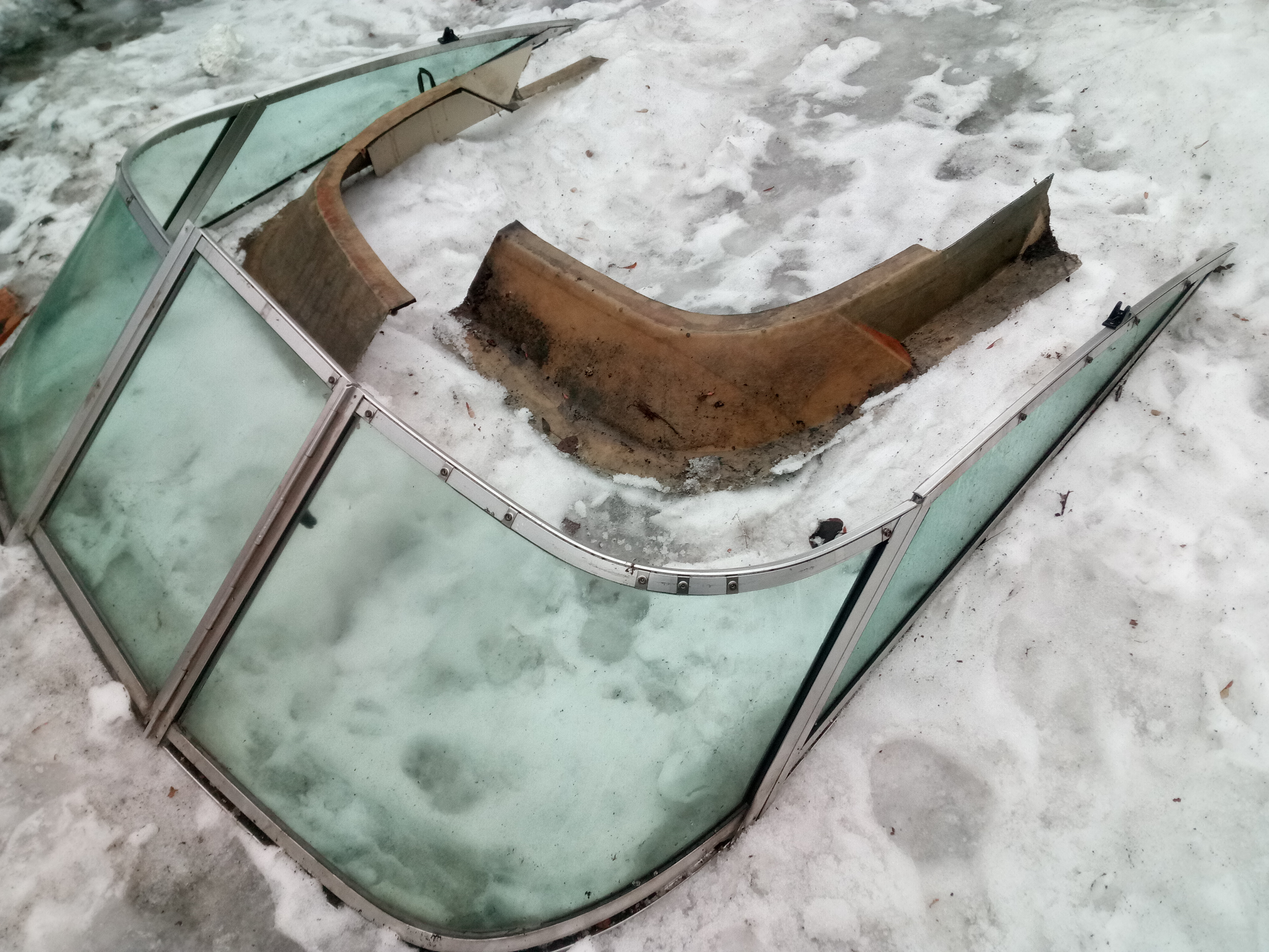 При желании могу отреставрировать рамку, установить новый поликарбонат и смонтировать на катер-лодку.