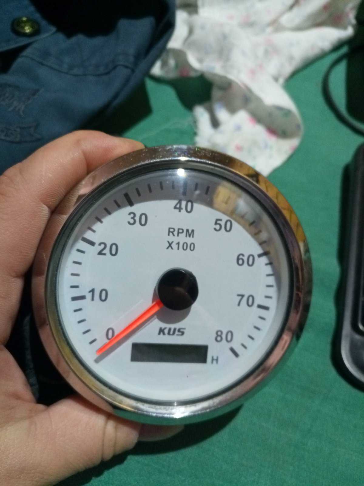Тахометр для лодочного мотора KUS 0-8000 об/мин. Со счетчиком моточасов. Установил на лодку, опробовал и все. Почти новый. Поедет наложкой.