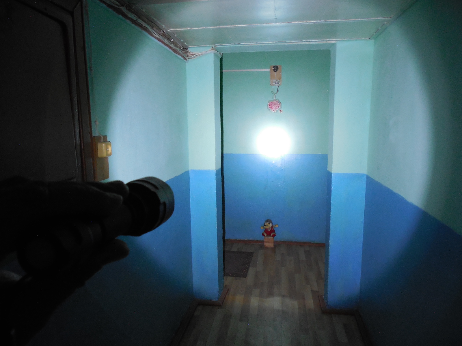 Парочка реальних фоток, зроблених мною в повній темноті, як світить фонарь: