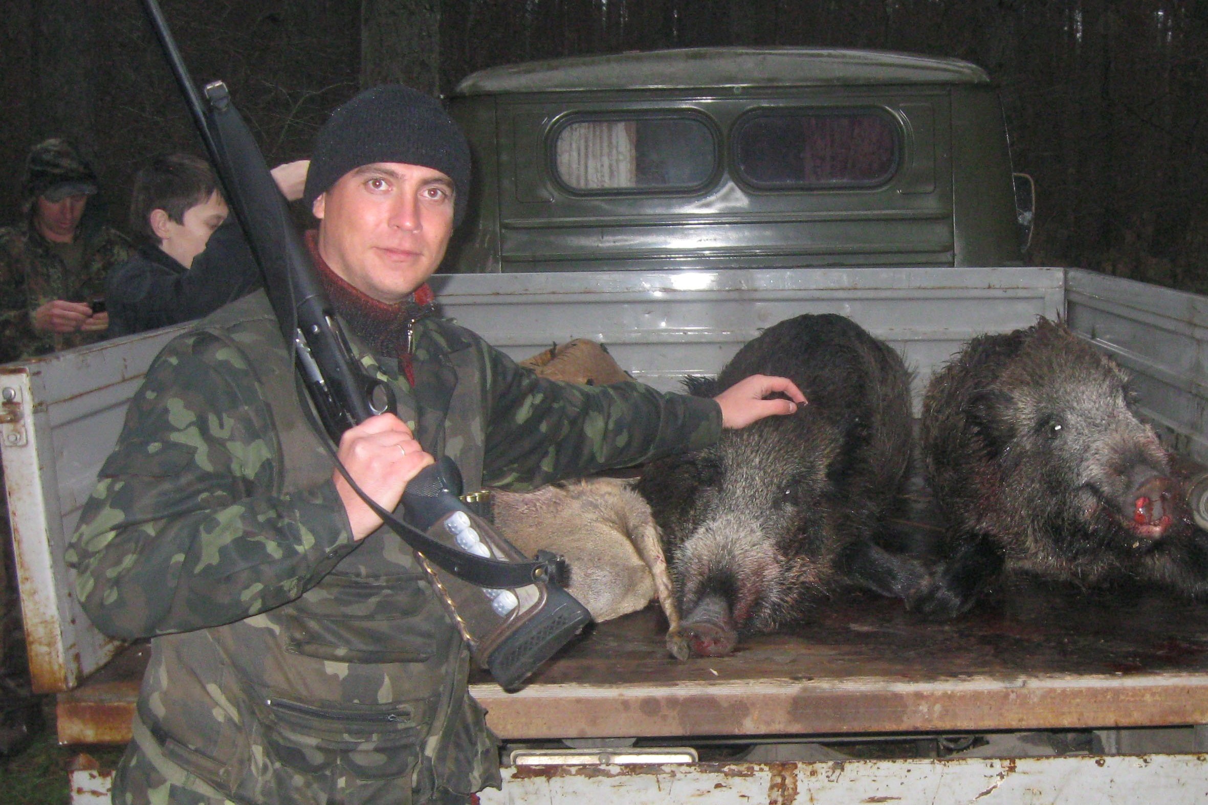 Поучаствую в теме. Мой трофей, один из первых кабанчиков 2006 год. И фото споследней охоты, ноябрь 2011 год. Но и фотка с инета которая мне оссобенно понравмлась.