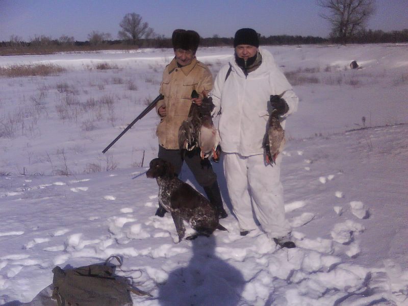 Заяц за кадром остался. Лайки иногда помогают, а иногда очень мешают, особенно, когда они забегают наперёд метров за 100 и всю дичь разгоняют. У егеря, где мы охотимся их три. Самому матёрому уже 14 лет, так вот он даже стойку на фазана делает. Дичь с камыша и с воды не выносят. Был случай, когда они заганяли лису в камышах и давили (не подранка). Одним словом, за утками лазил я ![]() P.S: у моего отца был курцхар, так вот это был действительно помощник на охоте. |