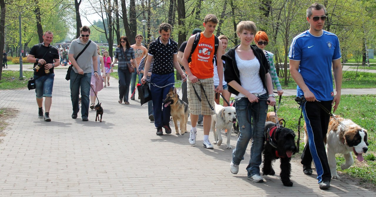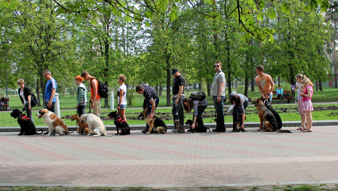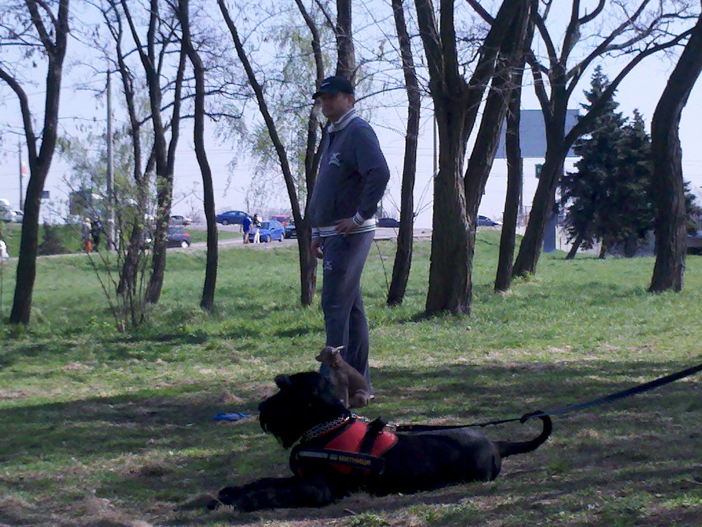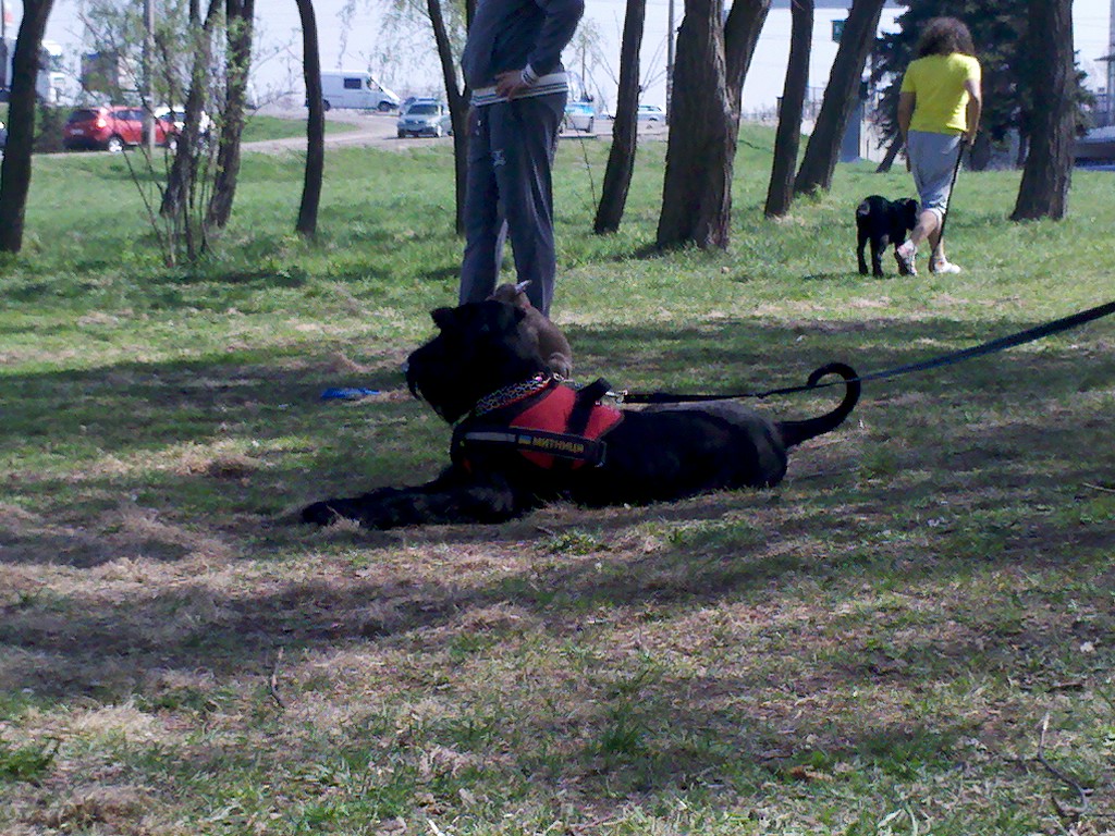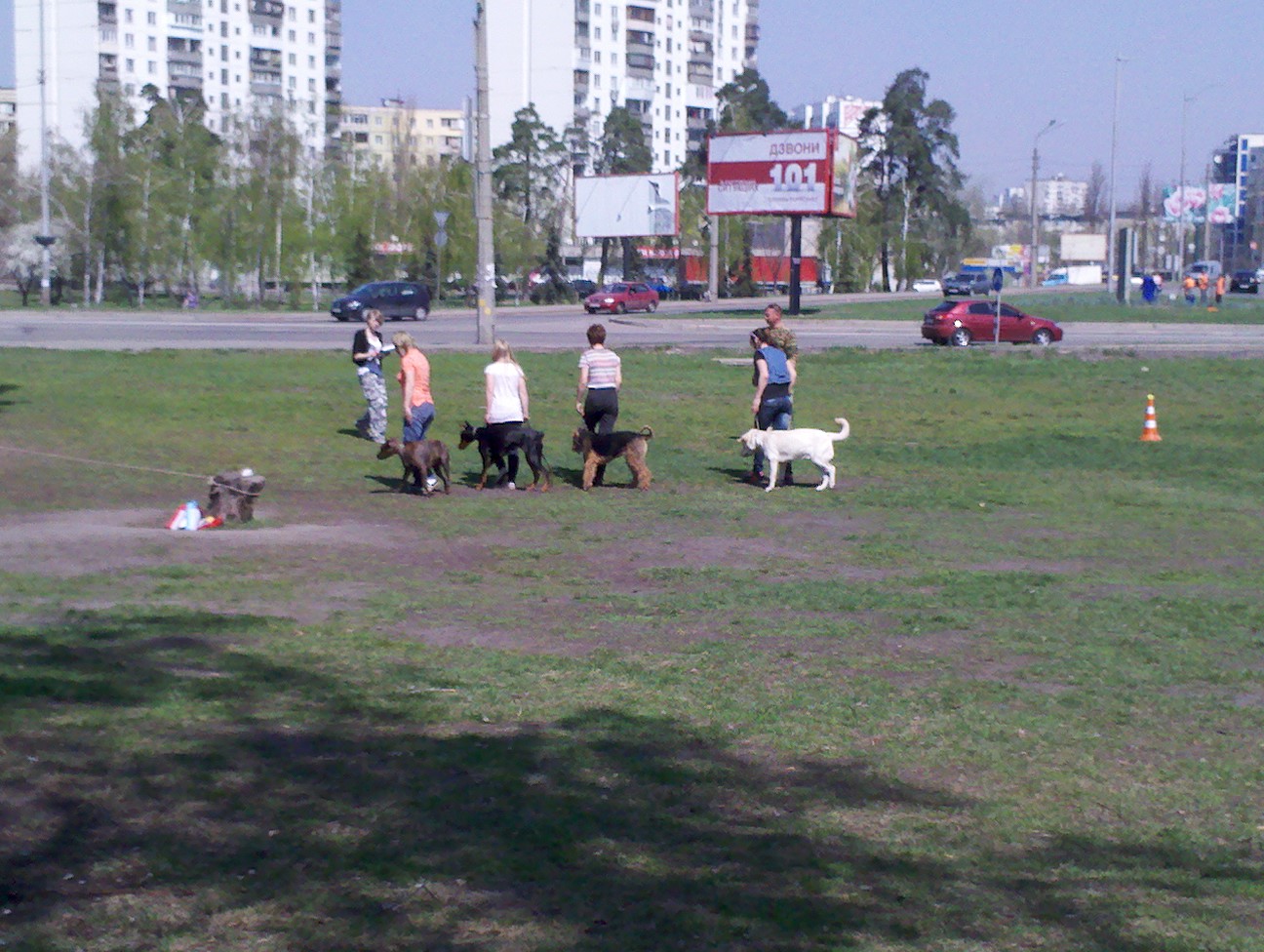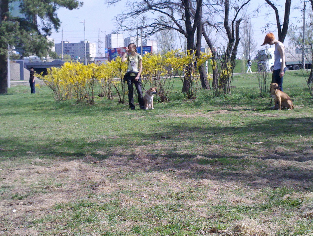 Ходили строем по одному, по два, по три с остановкой. Потом пришли в парк и гуляли. Сегодня Джеси показала зубы и характер тем собакам которые ее конкретно доставали, а те которые не доставали она их не трогала)))) Гуляли с 10:00 до 15:00. Собака потихоньку становиться социальной. |