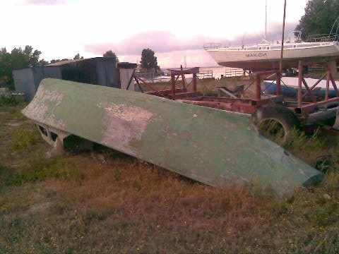 Материал- "советский"стеклопластик. От носа до "хвоста"+-7,6м. Ширина 1.8 -1.9м