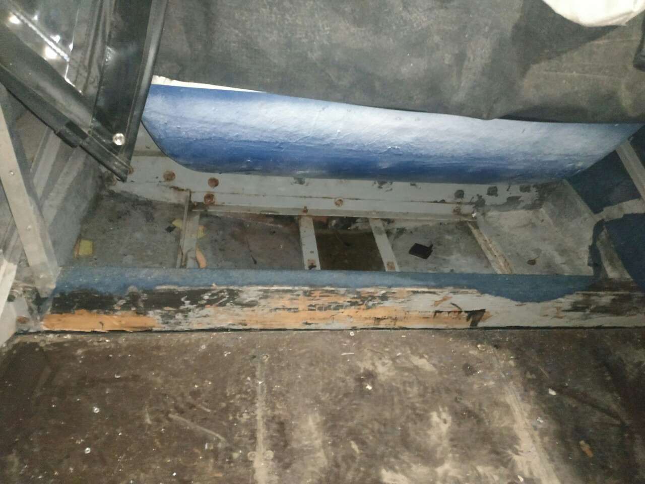 Сорвал обшивку с бортов, завтра буду снимать полы и вырезать каркас из квадратной трубы. Кто то старался...