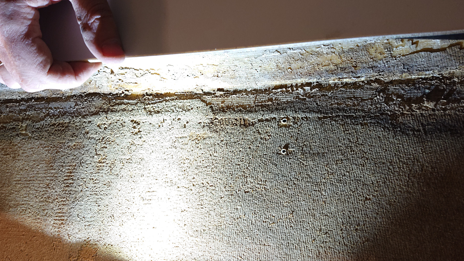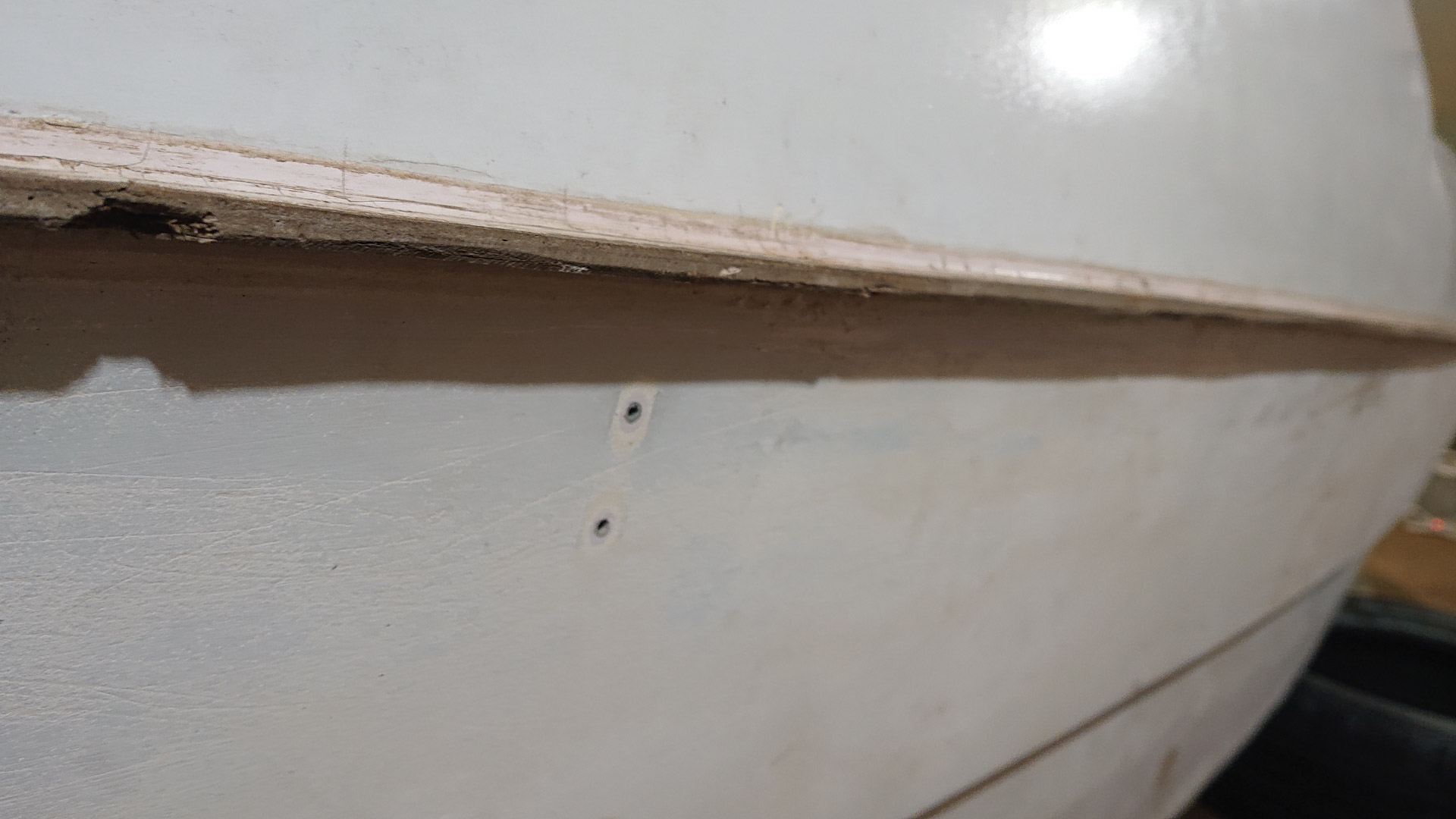 В таком состоянии мое днище гуляло МАМО НЕ ГОРюй. И дабы избежать деформации, подвешивал под скулы, вымерял "диагонали" "венгеркой" и летал над корпусом как карлсон с кисточкой и роликом.