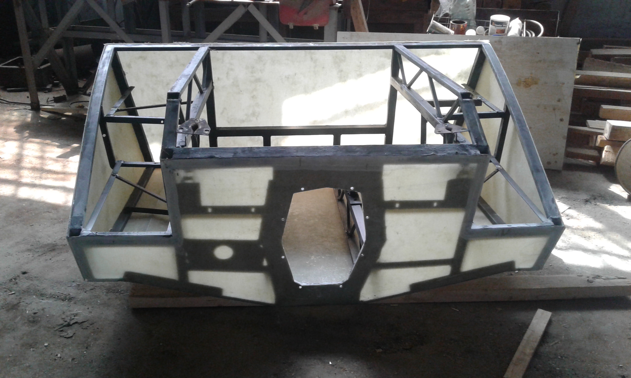 Параллельно, но теми же двумя руками, потихоньку делается моторный блок плавучести. Пластик катал полиэфиром на стекле.