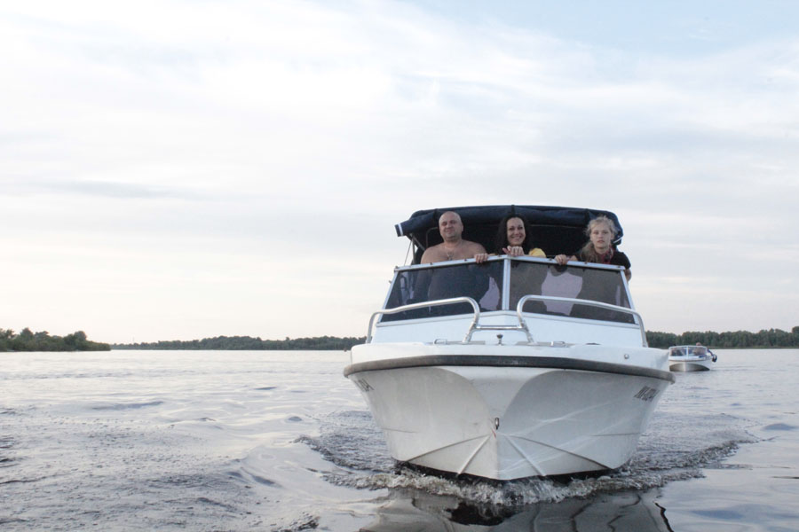 Да, действительно, выход на глиссер долговат! Но может потому, что нос абсолютно пустой, а все сидят на корме!