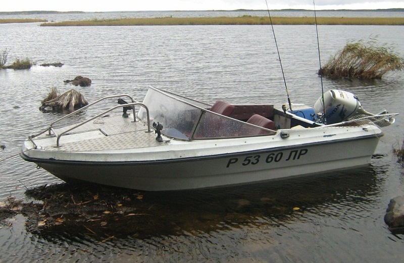 транец поднят и усилен, киль - усилен стекловолокном в 4 слоя (по словам продавца), покраска - 2 года назад