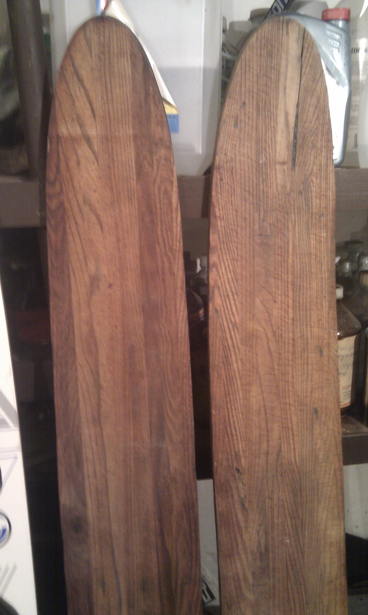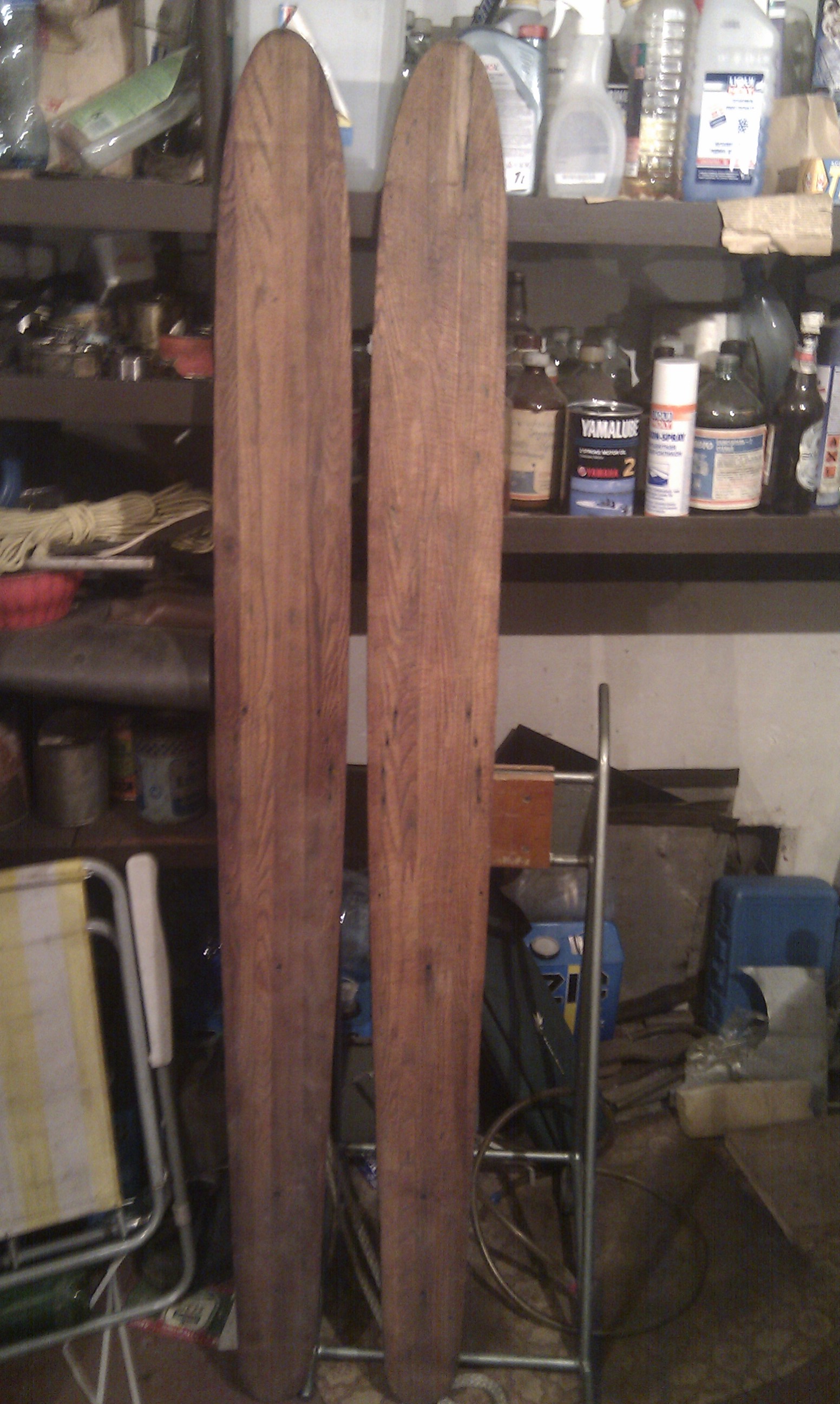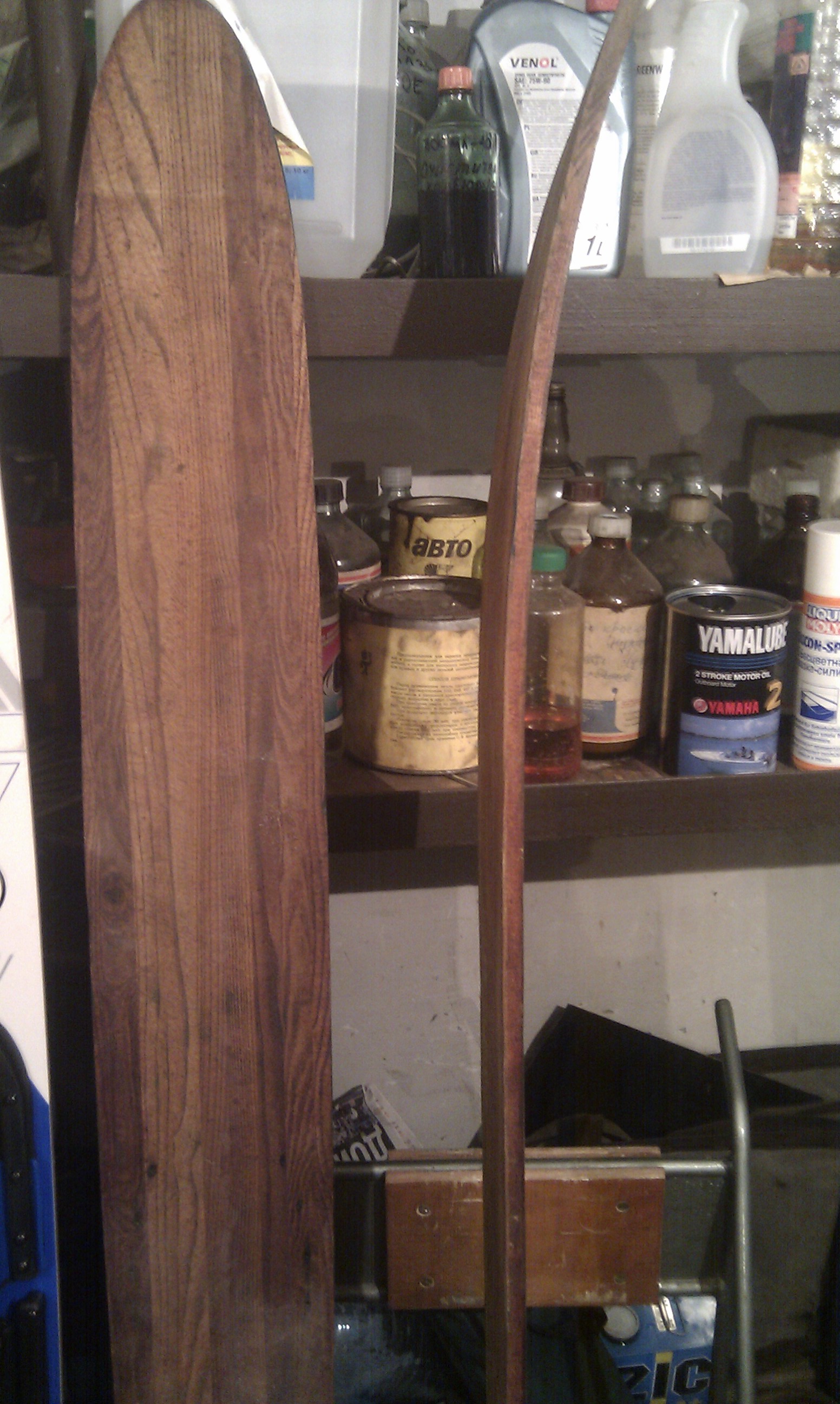 В общем, лежат у меня без надобности пара самодельных водных лыж. Лыжи, походу, ранее использовались по назначению, но крепления отсутствуют. Дырочки есть, видать оно было, но сняли.