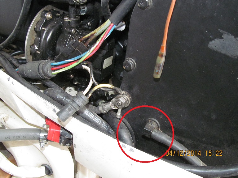 Красным на Фото по вопросу- откуда у этого мотора идет шлангочка на контрольку охлаждения.