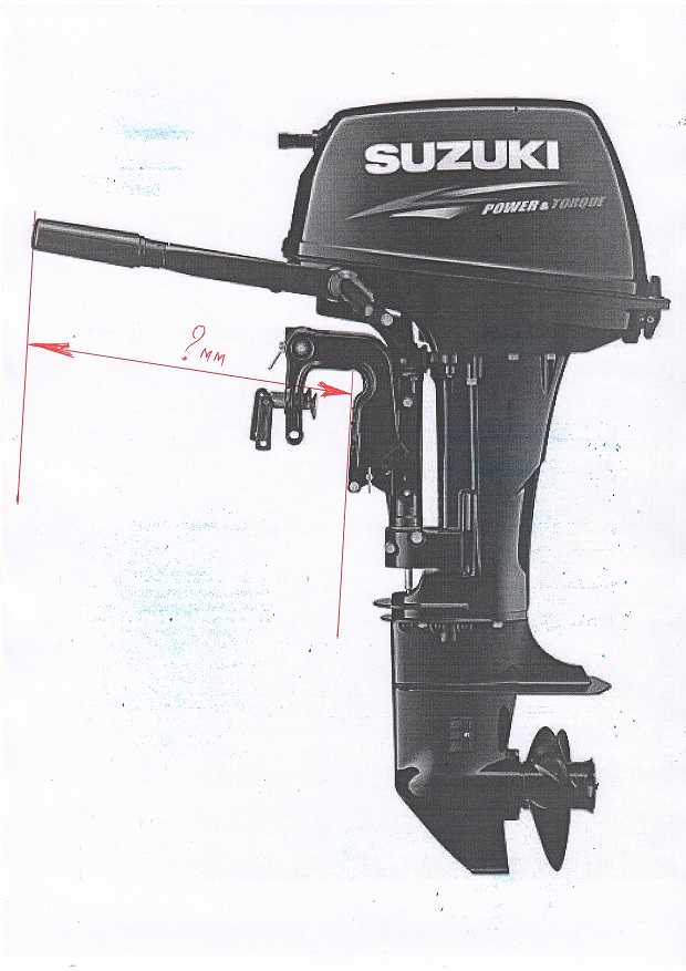 1 максимальное расстояние между внешней частью струбцины (внешнего края транца лодки) до среза румпеля, картинку прилагаю.