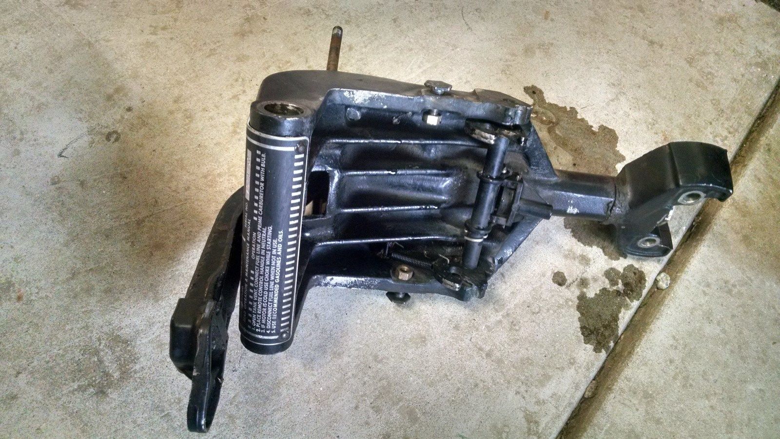 Если Вы про муфту то фото увы нет, редуктор уже собран. При включении ЗХ муфта упирается в штырь и блокирует зацепы, при включении ПХ блокировать нельзя так-как при наезде на что-то вырвет мотор с транцем, он должен откидываться при наезде на препятствие, конструктивно так и задумано что блокировка срабатывает только при включении ЗХ. Вот фото моей подвески, на ней видны два зацепа которые и блокируются[/QUOTE]