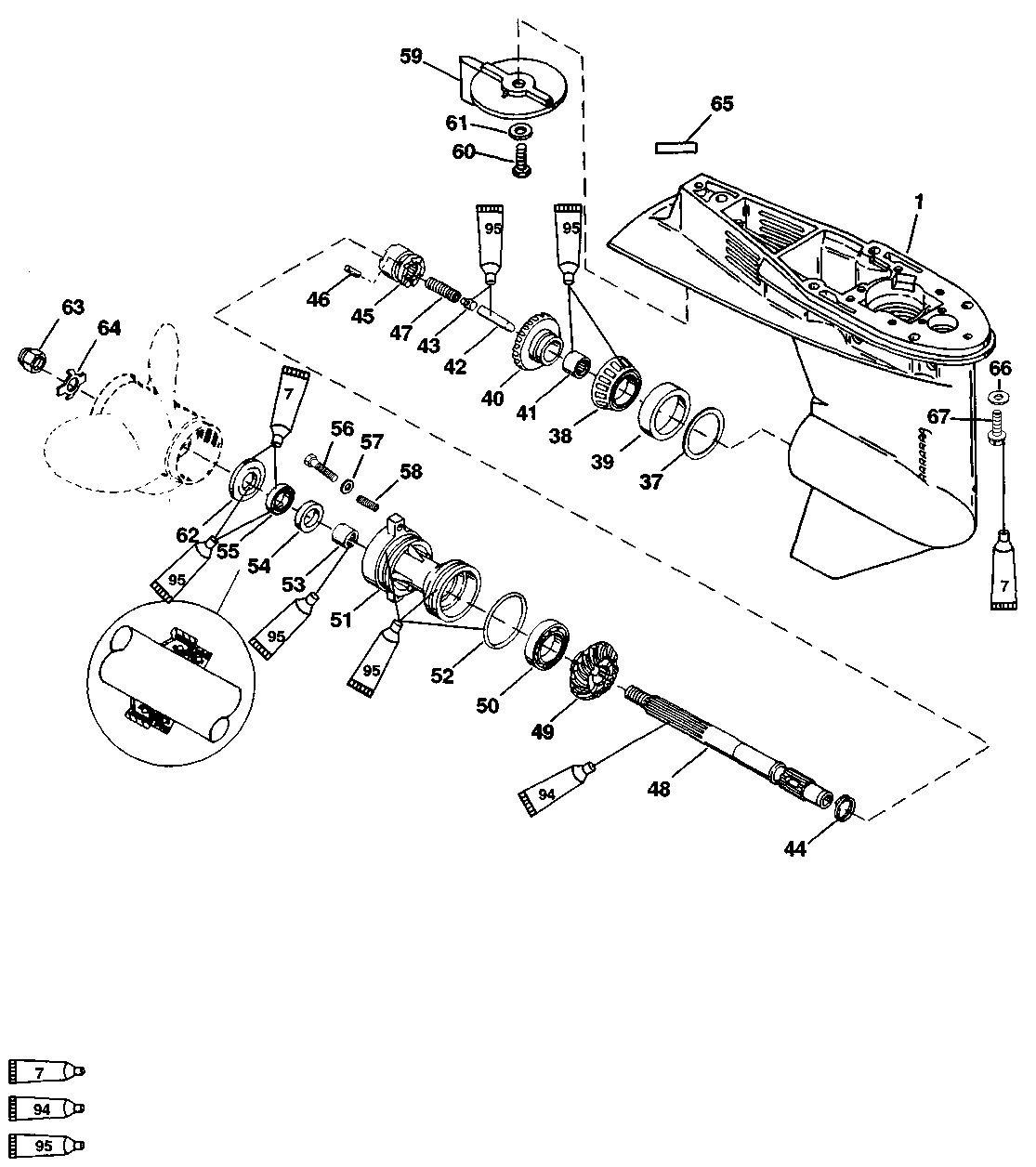 Меркури 50 4т . На оборотах выше средних, с характерным звуком вылетает скорость! И вперед и назад. Отсоединил трос командера, включал вручную, отверткой, ситуация та же. Снял редуктор, под сальником гребного винта леска.Слил масло- эмульсия, без посторонних предметов.Разобрал все детали в идеальном состоянии!!!