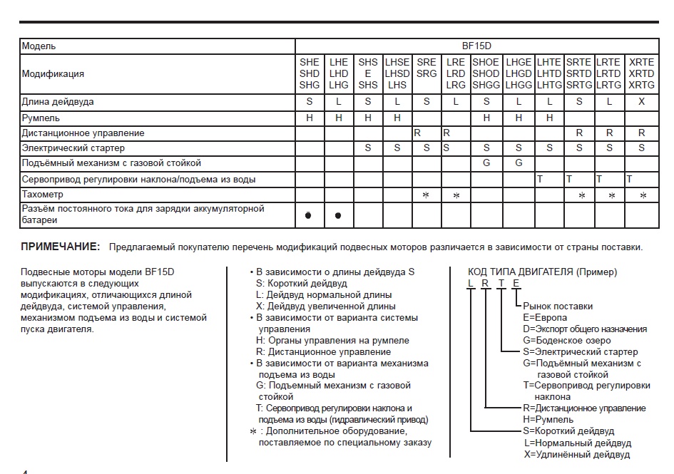Купил лодку с мотором, в документах указано, что мотор Honda 15BALJ, тоже самое написано на шильдике с номером, загуглил инструкцию, открываю, а там какая-то непонятная классификация: в общем, не могу понять, как "притянуть" свои BALJ к тем SHOE и т.д... |