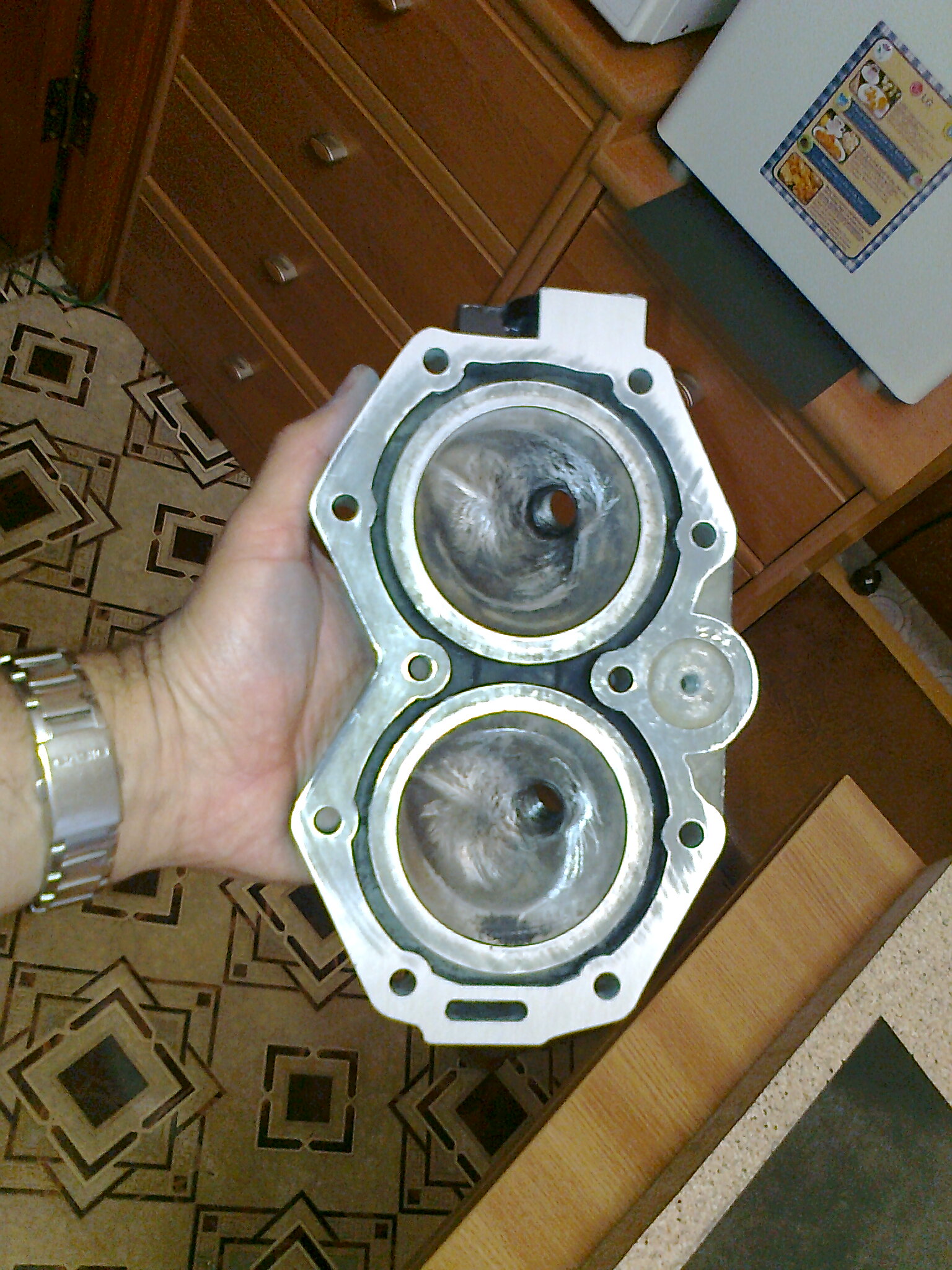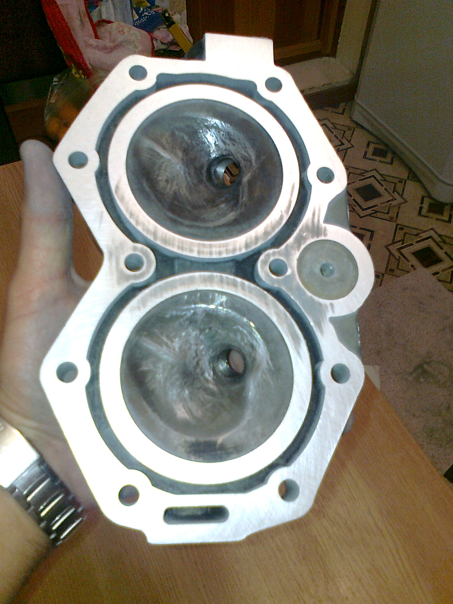 Руслан, заполируй полость камеры сгорания, добавь Кириллу мощности. Заодно и донышки поршней с продувочными окнами и перепускными каналами Ну и блок можно в любую автомастерску везти, что б там её проверили и шлифонули, если будет необходимость. Если чего, звони, дам адреса.