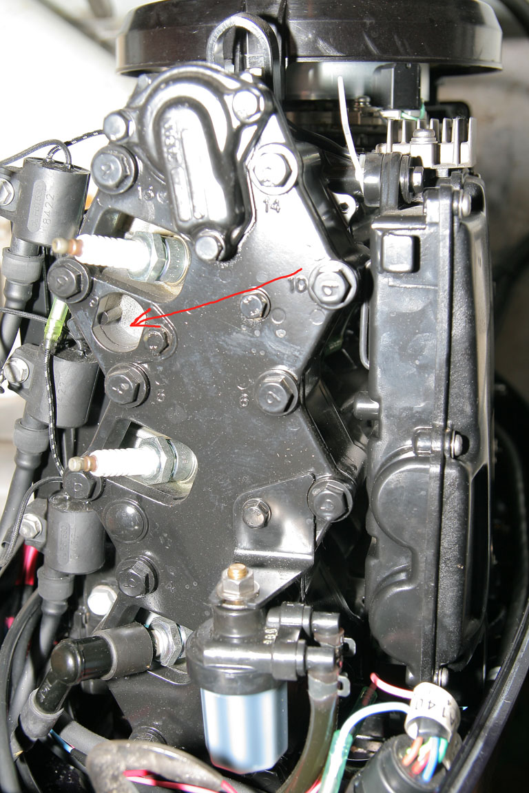 Обнаружил на своем моторе Тохатсу 50л.с. 2т. (см фото, показано стрелкой) такое технологическое углубление. Подскажите, для чего оно?
