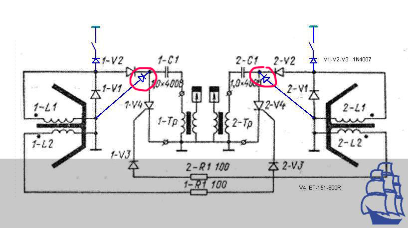 Прошлой зимой, несколько изучая вопрос переделки зажигания, просматривал много схемных решений. Некоторыми (уважаемыми мною) людьми желательная установка (без них тоже все работает) данных диодов объяснялась, как подстраховка (поддержка) тиристоров (они включены им паралельно) при колебательных процессах после искры. В других схемных решениях CDI зажиганий они присутствуют. Поэтому ставил по аналогии, так сказать.