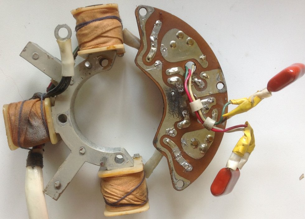 ЗЫ ЗЫ У фишбейна на стр.166 снизу деталировки есть примечание, что в магдино МБЭ-3 предусмотрено охлаждение печатной платы и конденсаторов потоком воздуха от вращения маховика. Понятие не имею как это осуществлено, но подтверждает ранее озвученную мысль о тяжелом тепловом режиме платы при размещении ее под маховиком.