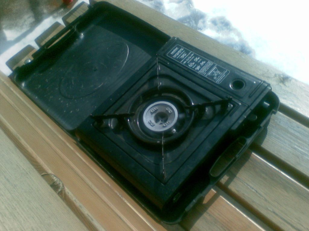 Использую обычную газовую плитку (маленькую, двухкомфорочную), купленную на обычном рынке.